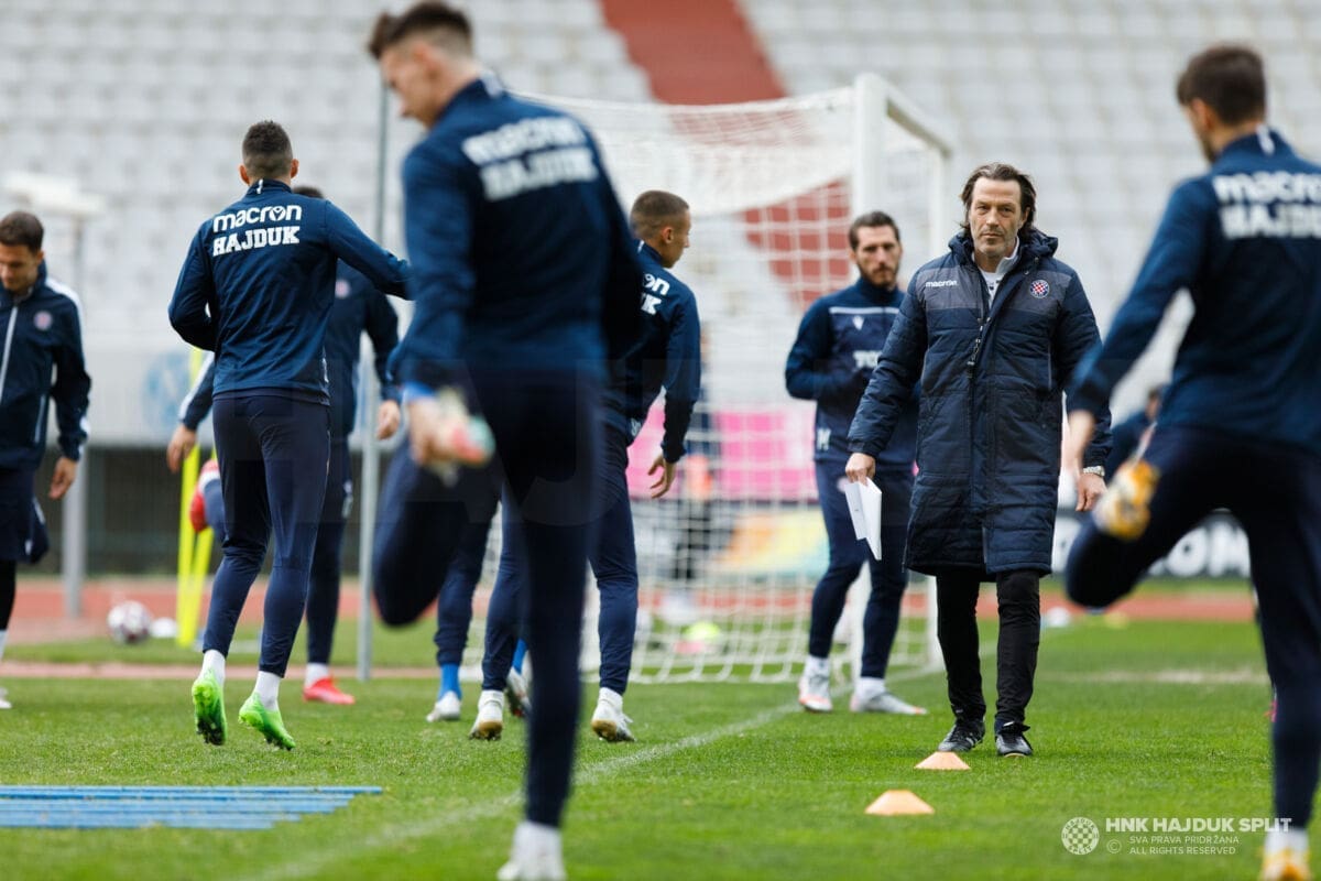 Pod vodstvom trenera Paola Tramezzanija i njegovog stručnog stožera nogometaši Hajduka odradili su u četvrtak popodne posljednji trening uoči prve utakmice nastavka sezone u kojoj Bijeli igraju protiv Šibenika na Šubićevcu.