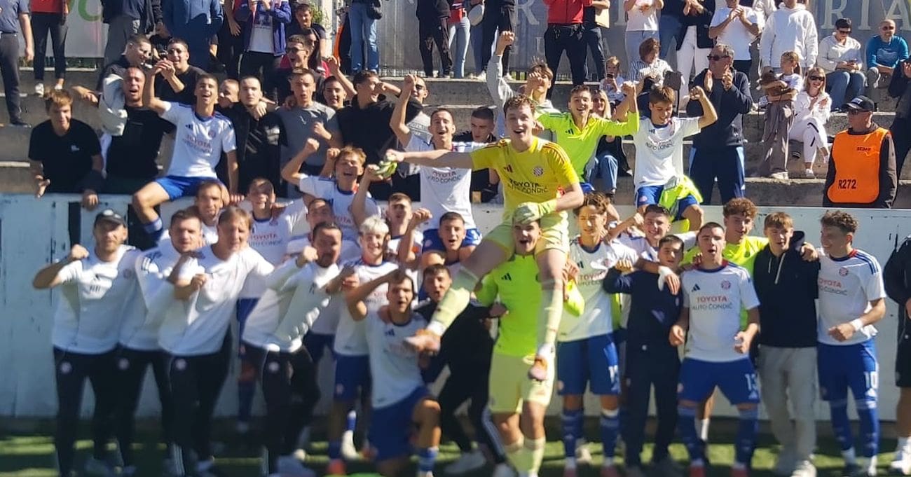 Kadeti Hajduka nadigrali su Dinamo s 3:1 pa sad imaju po 17 bodova. Strijelci su bili Matko u 37., Alujević u 57. i Gudelj u 77., a za Dinamo Trupčević u 90. minuti.