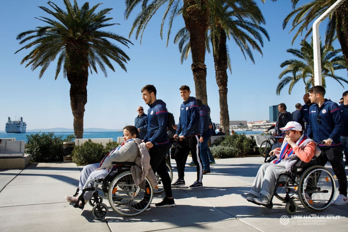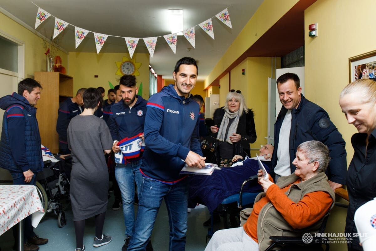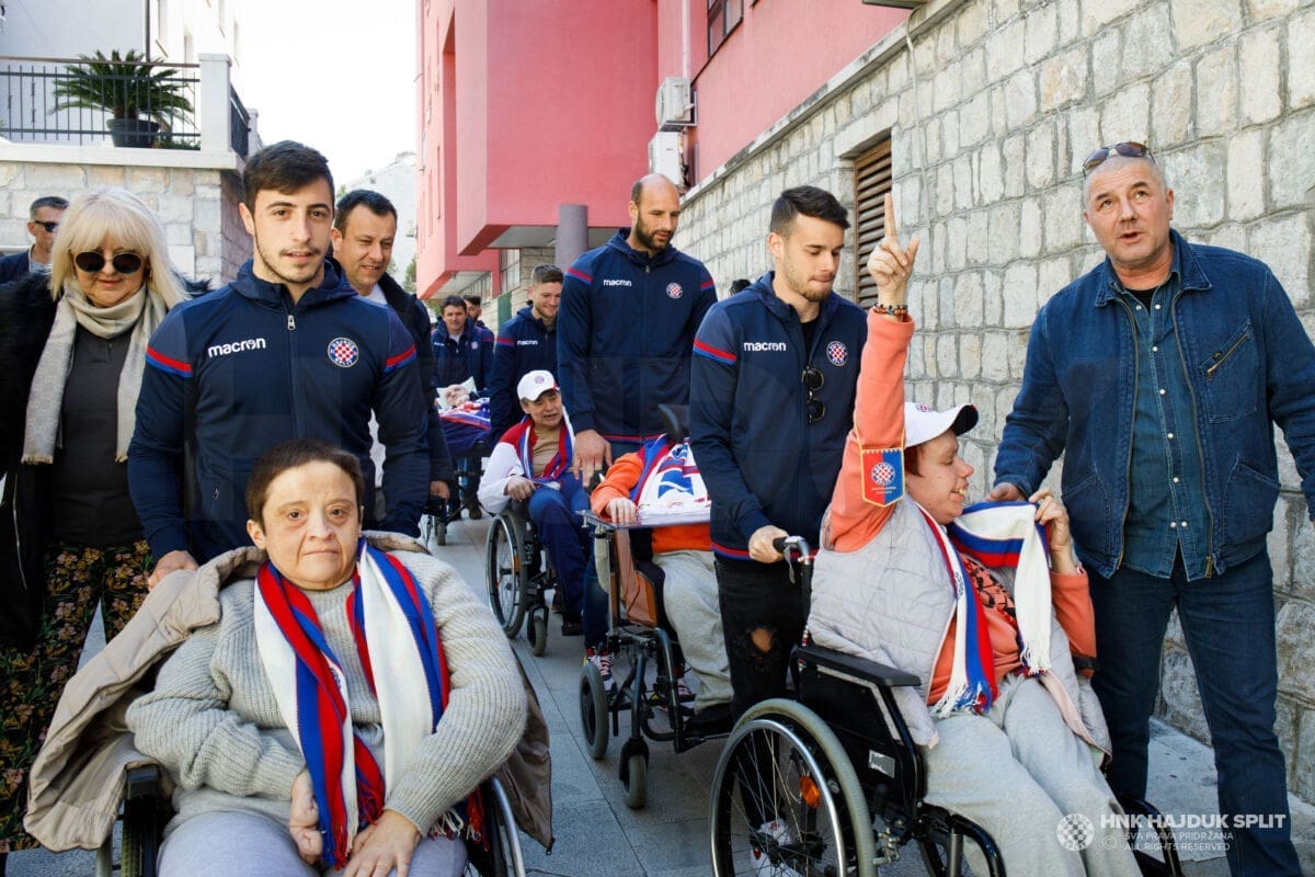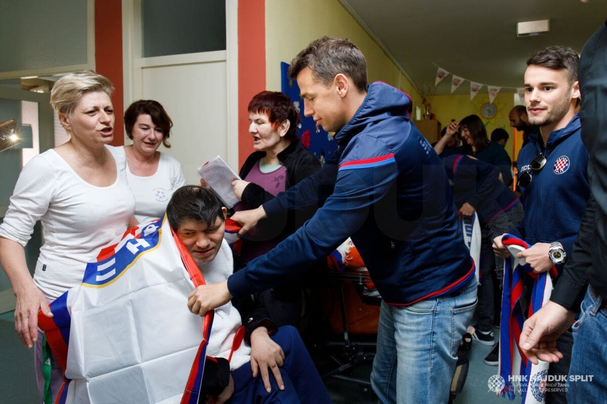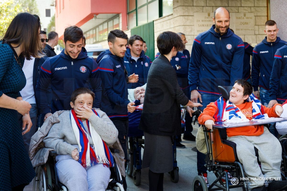 Igrači i stručni stožer Hajduka jutros su posjetili štićenike splitskog Centra za rehabilitaciju "Samaritanac" koji skrbi o osobama s najtežim oblicima invaliditeta.