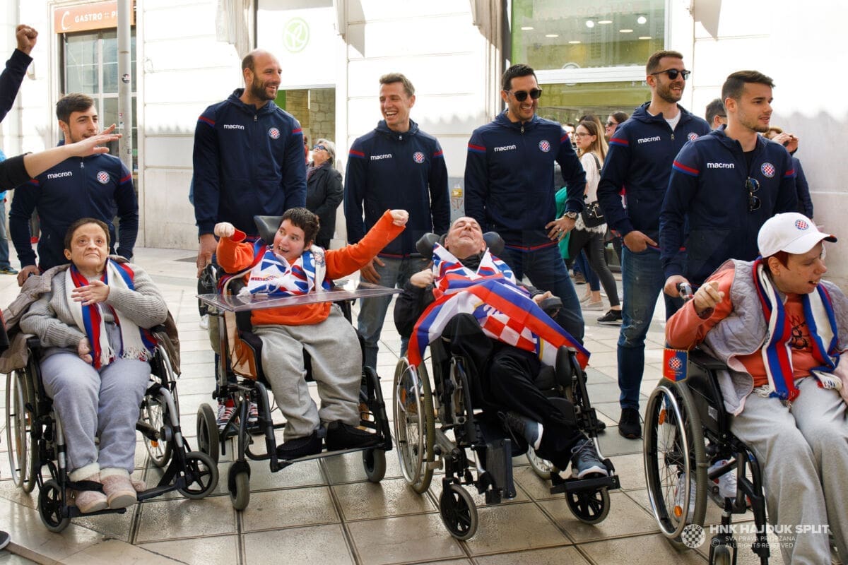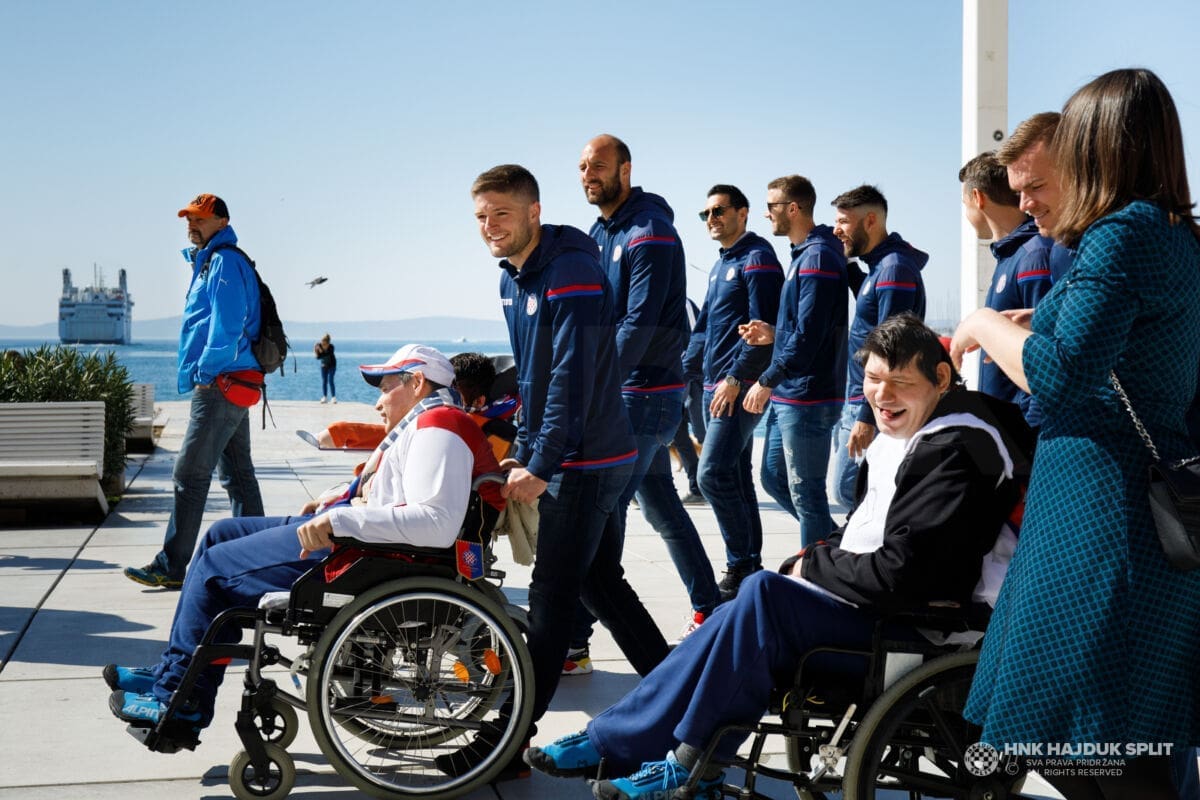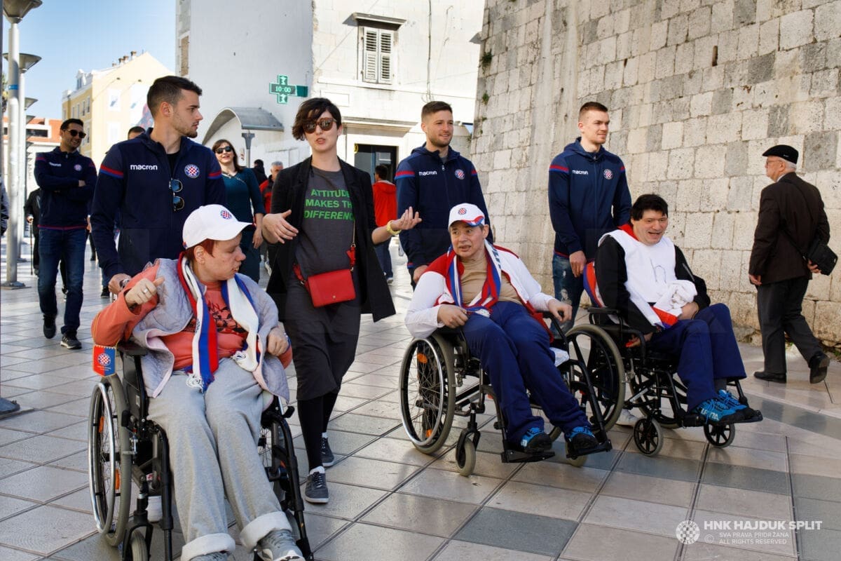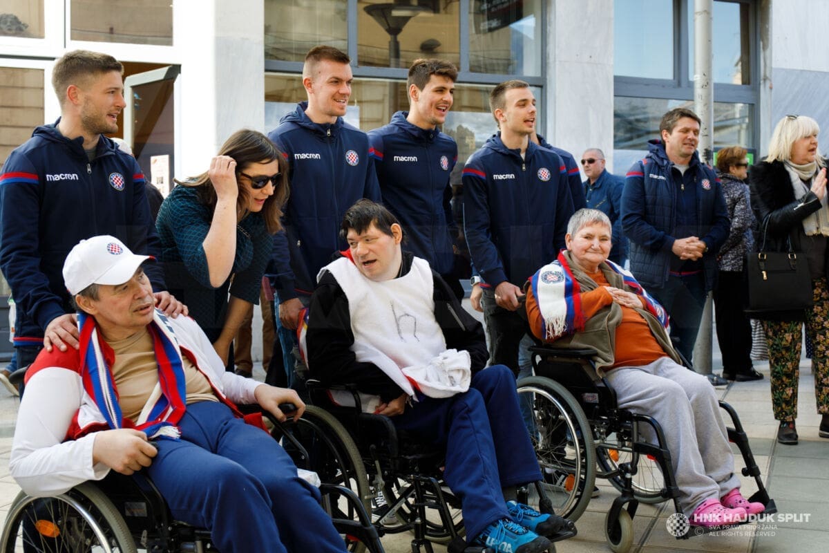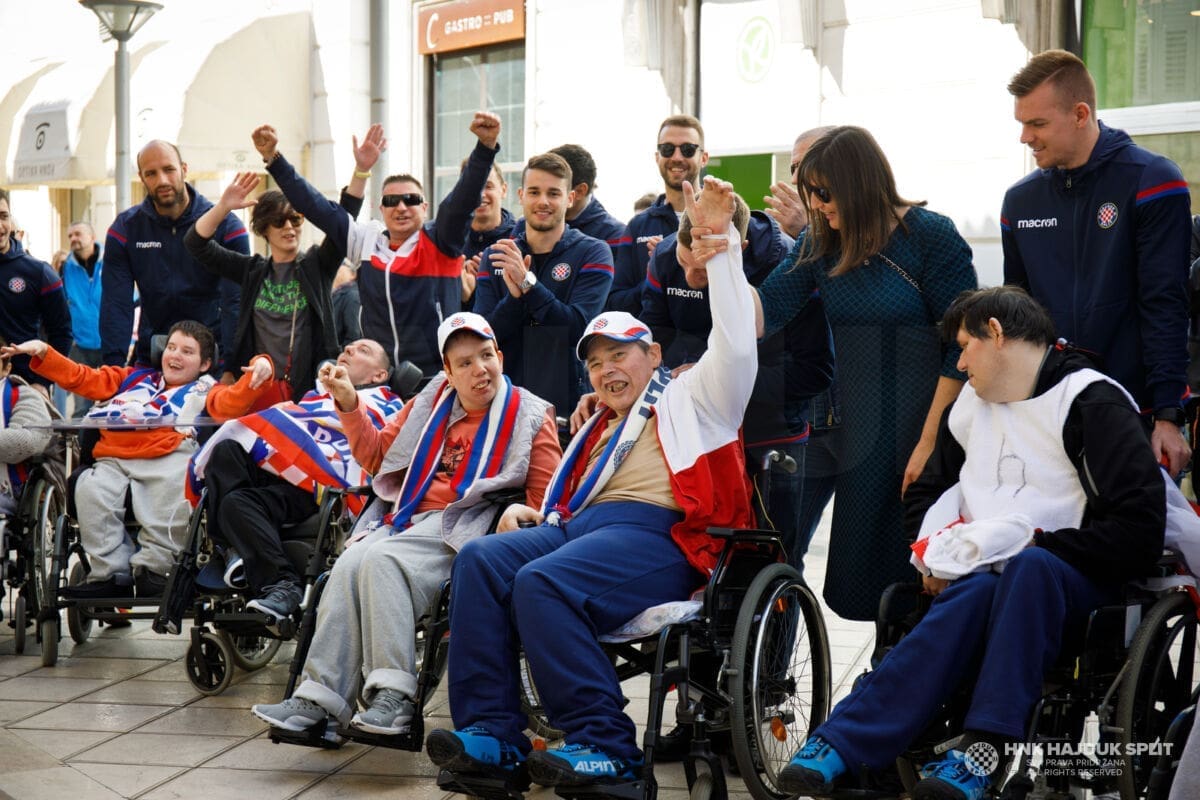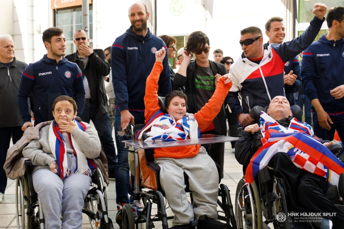 Bilo je to jutro prepuno pozitivnih emocija, poseban doživljaj za štićenike centra, ali i hajdukovce koji su ostali ganuti njihovom iskrenom emocijom. Zapjevale su se i hajdučke pjesme, najprije u samom centru, a zatim i u Marmontovoj ulici na opće oduševljenje svih koji su tamo zatekli.