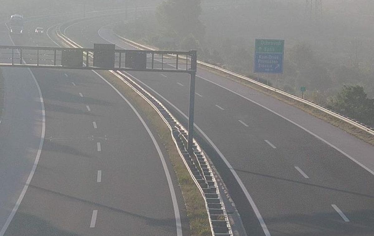 Magla, mjestimice vrlo gusta, smanjuje vidljivost. Na mjestima pod maglom kolnici su vlažni i skliski: