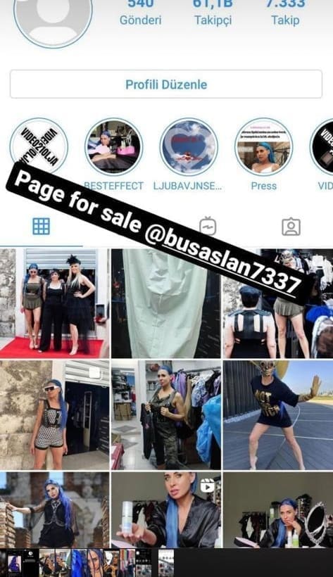 Kada se ide pristupiti njenom Instragramu piše da je nedostupan, a prethodno je pisalo "Page for sale @busaslan7337".