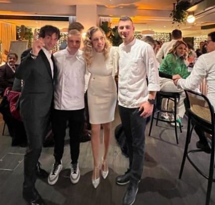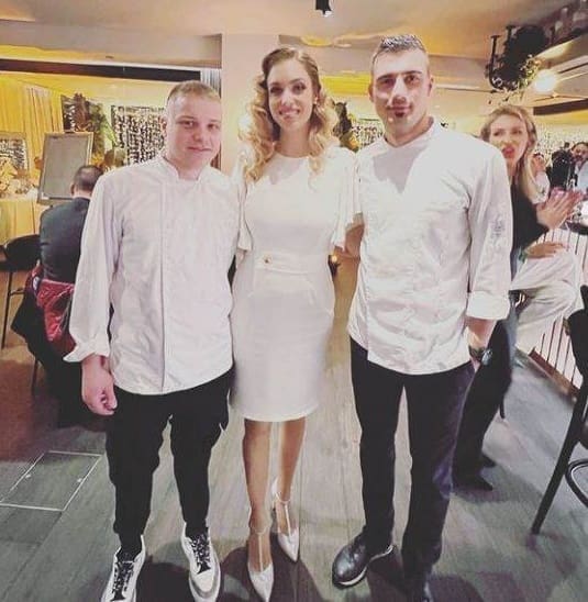 Hana je u jednostavnoj, ali elegantnoj bijeloj haljini dužine do iznad koljena pozirala s jednim od Grašinih kumova, Tomažom Kavčičem i mladim chefovima, a fotografija je završila na Instagramu.
