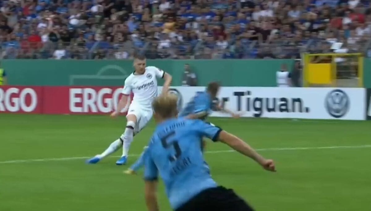 U prvom kolu 77. izdanja njemačkog nogometnog kupa Eintracht Frankfurt je rezultatom 3-5 (2-2) svladao trećeligaša Waldhof iz Manheima.