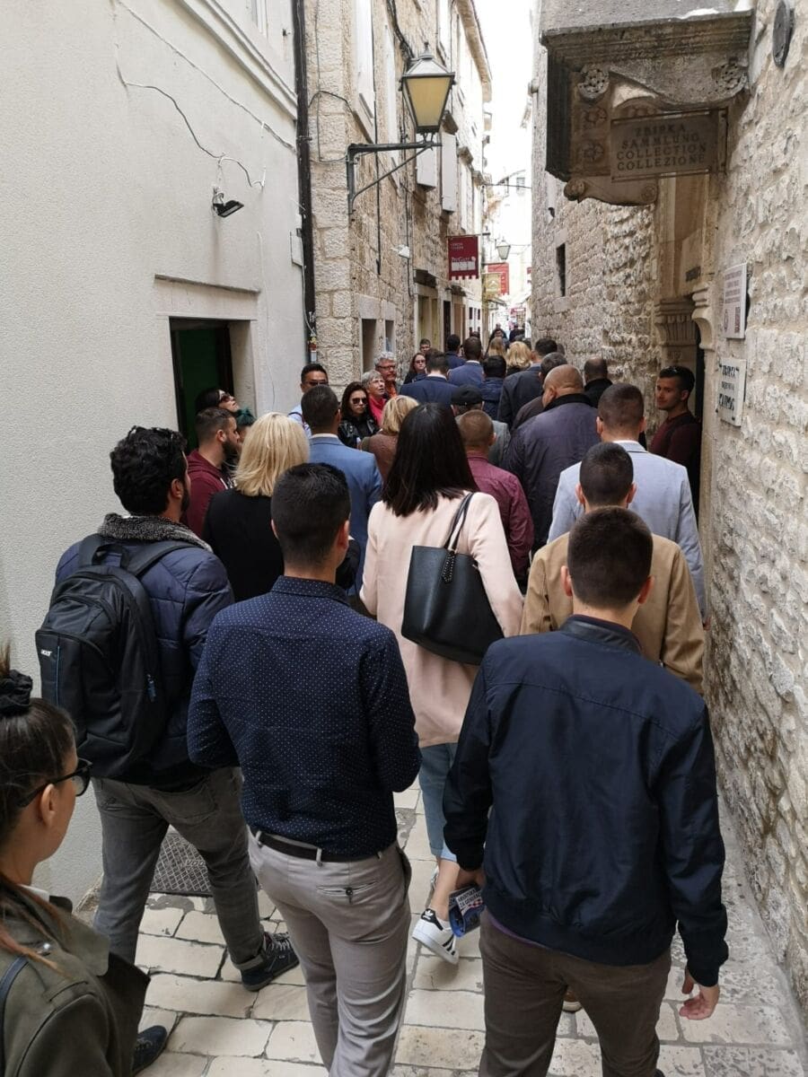 Druženje s građanima počelo je ujutro u Trogiru. Podršku kandidatima dao je, među ostalim, župan splitsko-dalmatinski Blaženko Boban. Kandidati su prošetali povijesnom jezgrom i gradskom rivom. Potom se krenulo u Kaštel Sućurac.