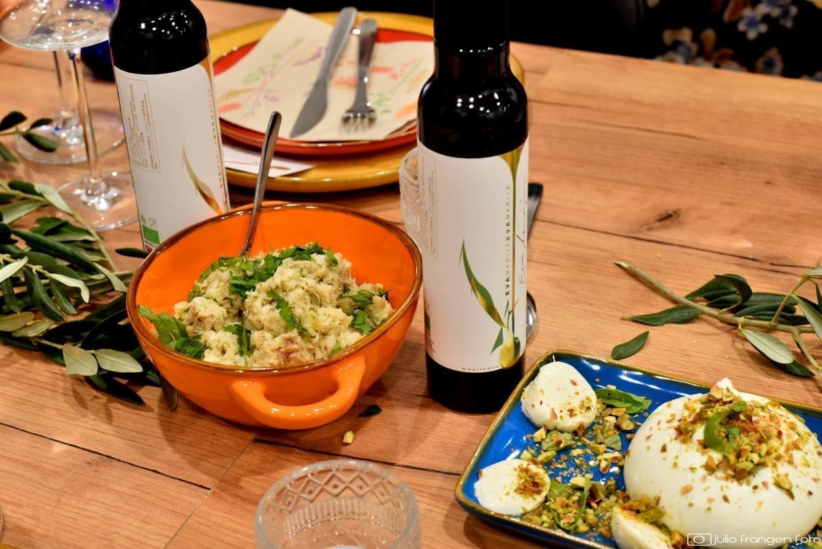 Večera je bila puno slasti, okusa, mirisa i – boja, kušala su se ulja prema pravilima struke (iz malih plavih čaša), saznalo se koje karakteristike mora imati ekstradjevičansko ulje, što to znači certificirani ekološki uzgoj biljaka … te je zaključak bio da večeru treba ponoviti pred brojnijom publikom.