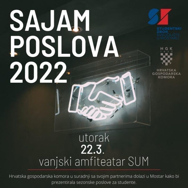 Na samom kraju pozivaju sve zainteresirane studente kao i ostale osobe da posjete Sajam poslova 2022 u utorak u vremenu od 11 sati do 14 sati.