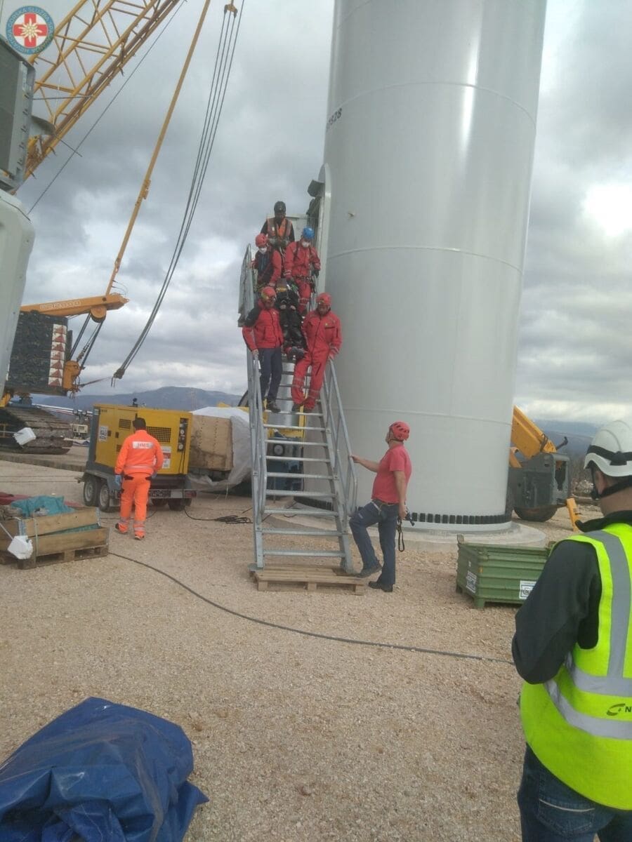 Saznaje se da se ozlijeđeni radnik nalazi unutar vjetroagregata, na visini od 35 metara. Zbog uklještenja živca u lumbalnom dijelu kralježnice i jakih bolova nije se mogao samostalno spustiti. Na mjesto događaja je izašlo sedam spašavatelja. Ondje su se već nalazili vatrogasci JVP Knin koji su unesrećenog imobilizirali, pa ga sigurno spuštaju i predaju timu HMP Knin.