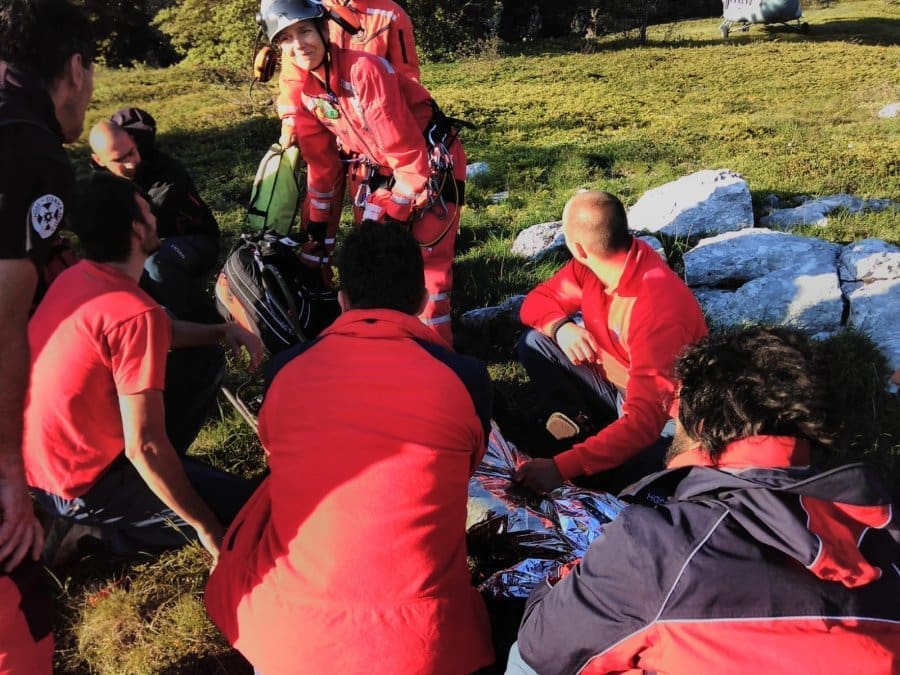 Odmah po dojavi pokreće se akcija spašavanja. S obzirom na hitnost i udaljenost (60-ak km od Gospića) te dodatnih 40-ak minuta hoda do unesrećene, istovremeno se upućuje i poziv za helikopter, dok u akciju spašavanja zemaljskim putem kreće 14 spašavatelja.