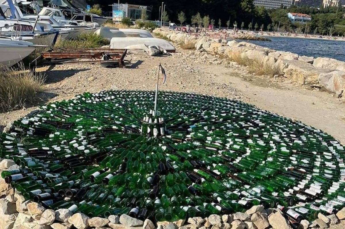 Naime, netko je na plaži Trstenik od pivskih boca napravio pravi "Splitski pozdrav suncu".