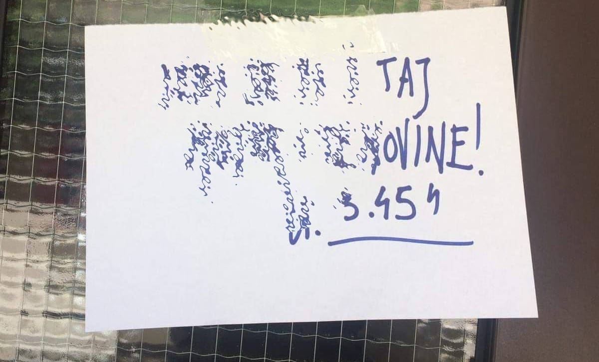 Sudeći prema poruci na papiru koja je osvanula na vratima jedne zgrade, netko se ljuti na dnevnu "rutinu" jednog djelatnika koji raznosi novine.
