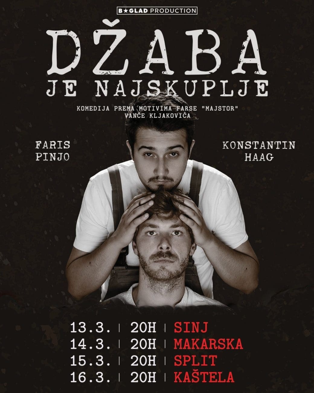 Konstantin Haag i Faris Pinjo svojim su ulogama profesora i majstora oduševili tisuće gledatelja intenzitetom glume, vjerno donoseći dva iznimno zanimljiva kazališna lika. Nakon što su već četiri puta rasprodali gledalište u Splitu, sredinom ožujka ponovno stižu, ovaj put u sklopu mini turneje po gradovima Dalmacije.