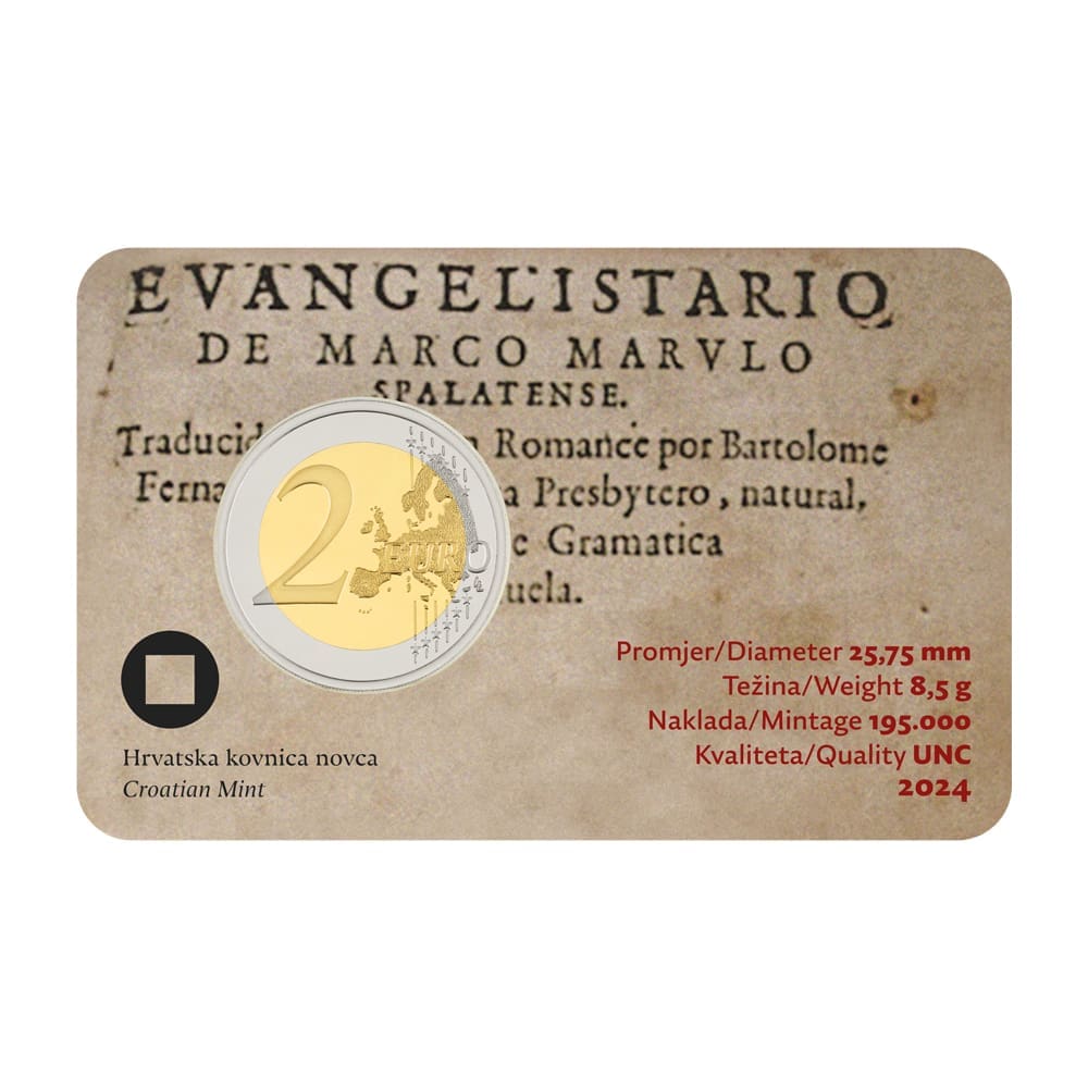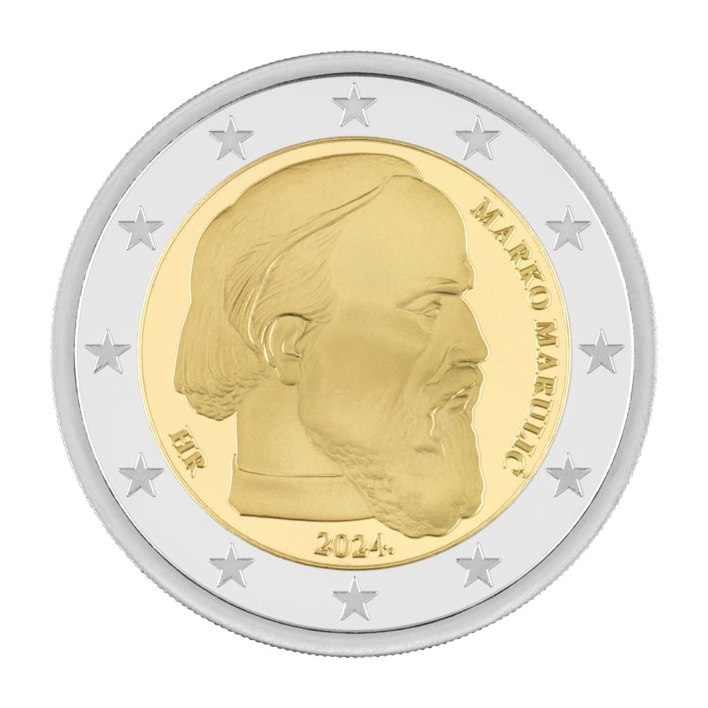 Hrvatska narodna banka pustila je 15. listopada ove godine u optjecaj prigodnu kovanicu od 2 eura "Marko Marulić" u povodu obilježavanja godine Marka Marulića, a zamjena prigodnih kovanica za građanstvo počet će 2. prosinca 2024.