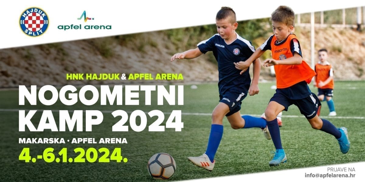 HNK Hajduk u suradnji s Apfel Arenom organizira "HNK Hajduk Junior Kamp – Makarska 2024" za djevojčice i dječake rođene od 2012. do 2018. godine. Kamp će se održati od 4. do 6. siječnja 2024. godine u Apfel Areni u Makarskoj.