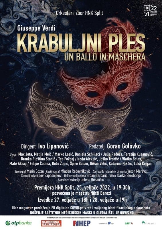 Zbog nepovoljne epidemiološke situacije odgođena je premijera Verdijeve opere Krabuljni ples 25. veljače, kao i najavljene izvedbe 27. i 28. veljače.