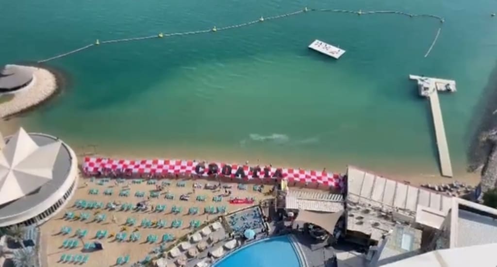 Kako je izvijestio kolumnist Gol.hr-a Ivica Medo iz Katra, skupina navijača došla je ispred hotela u kojem je smještena hrvatska reprezentacija, raširila veliku zastavu i zapjevala nekoliko pjesama.