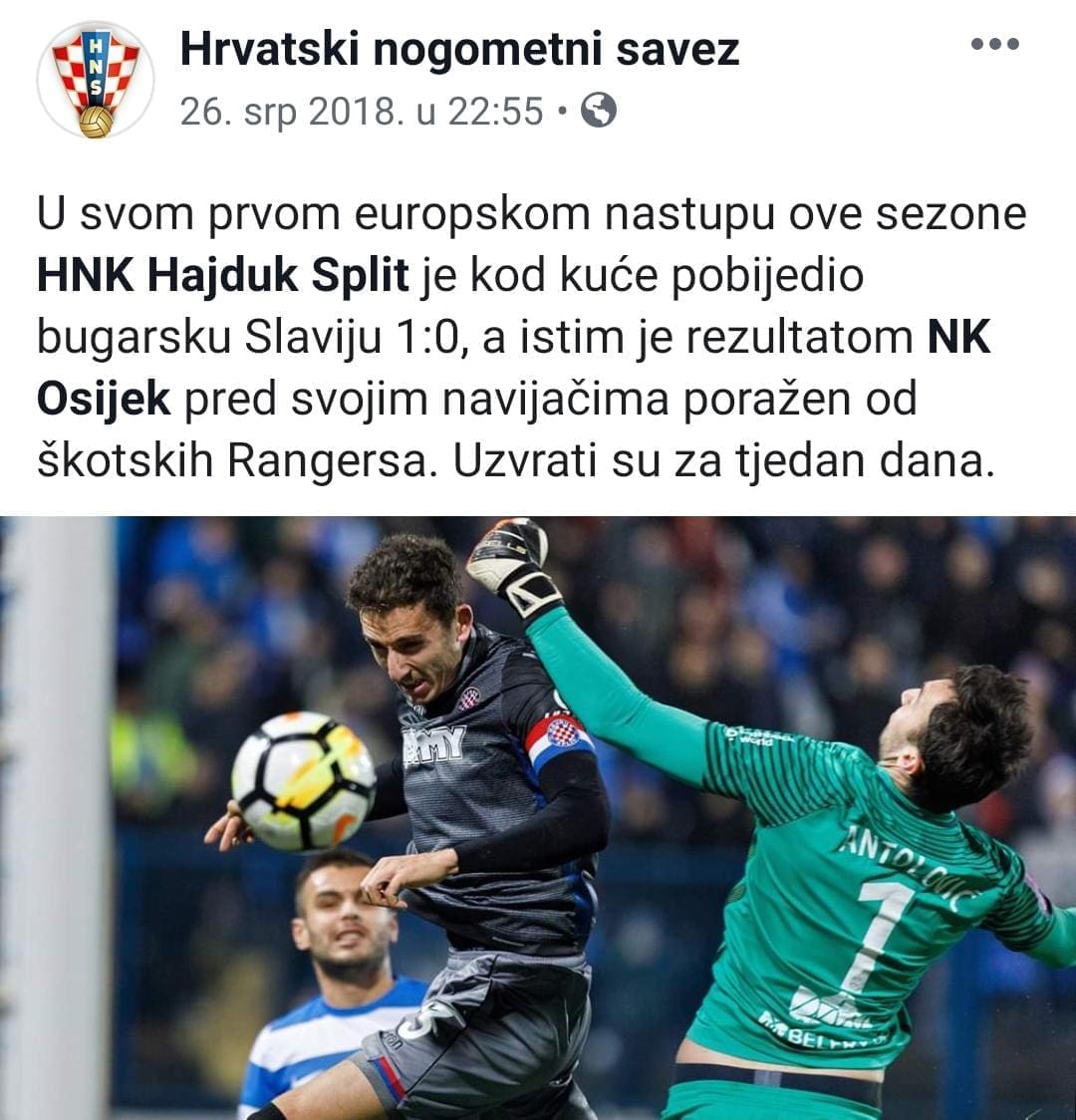 Podsjetimo, HNS je lani također objavio vijest u Hajdukovoj pobjedi u svom prvom europskom nastupu, ali čestitke nije bilo.