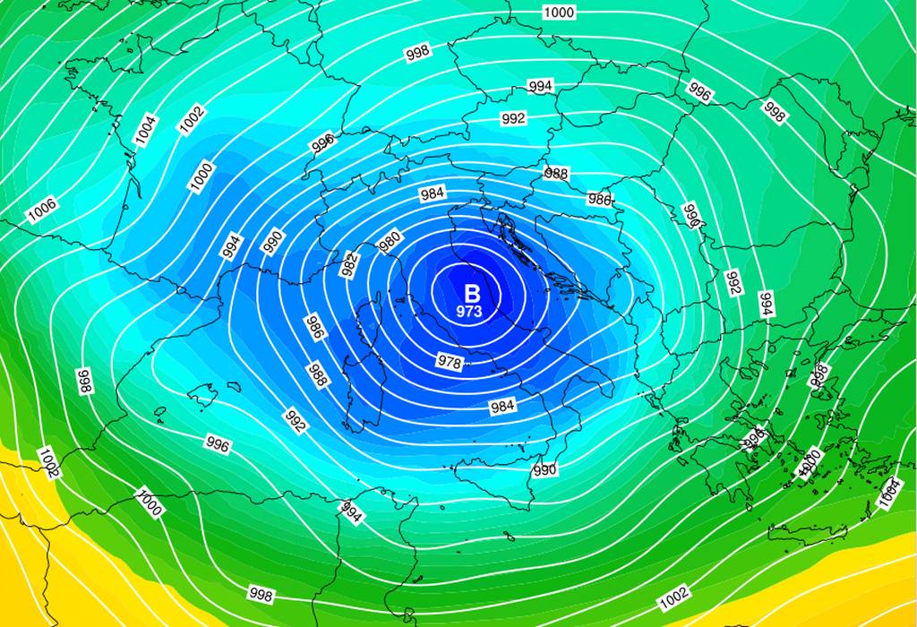 Neki prognostički modeli oko sljedećeg četvrtka predviđaju "superciklonu" nad našim područjem s centrom oko izrazito niskih 970 hPa nad Jadranom.