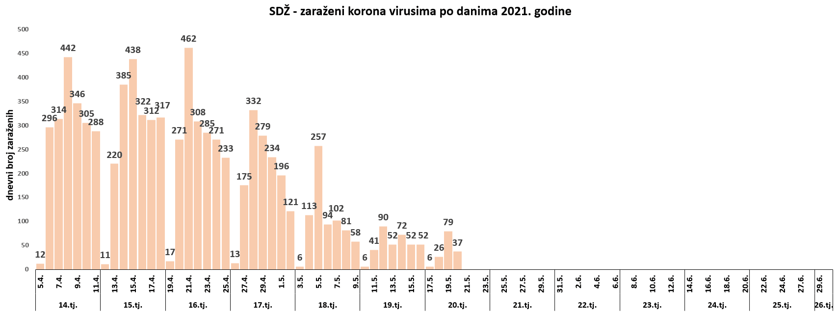 Smanjenje stope za SDŽ je pet puta od 1.759,03/100.000 u travnju do 335,90/100.000 na dan 19. svibanj.