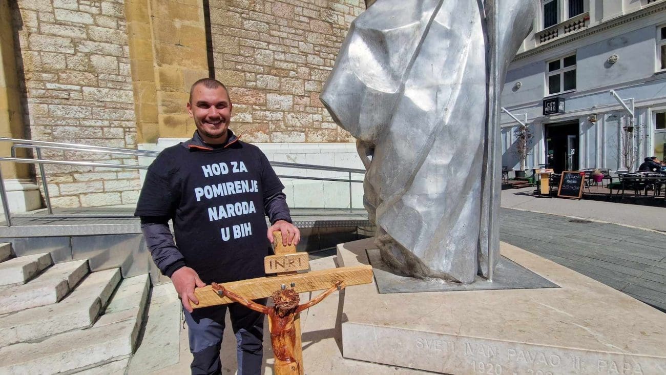 Josip Jelinić iz Ljubuškog otisnuo se na tisuću kilometara dug put. Ali, ovo nije običan put. Ovo je put mira. S križem na leđima, hodajući kroz gradove i sela i spajajući ljude različitih vjera i kultura, dočekali su ga u Sarajevu.