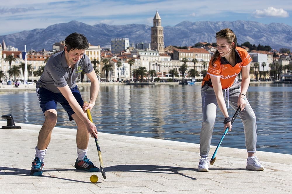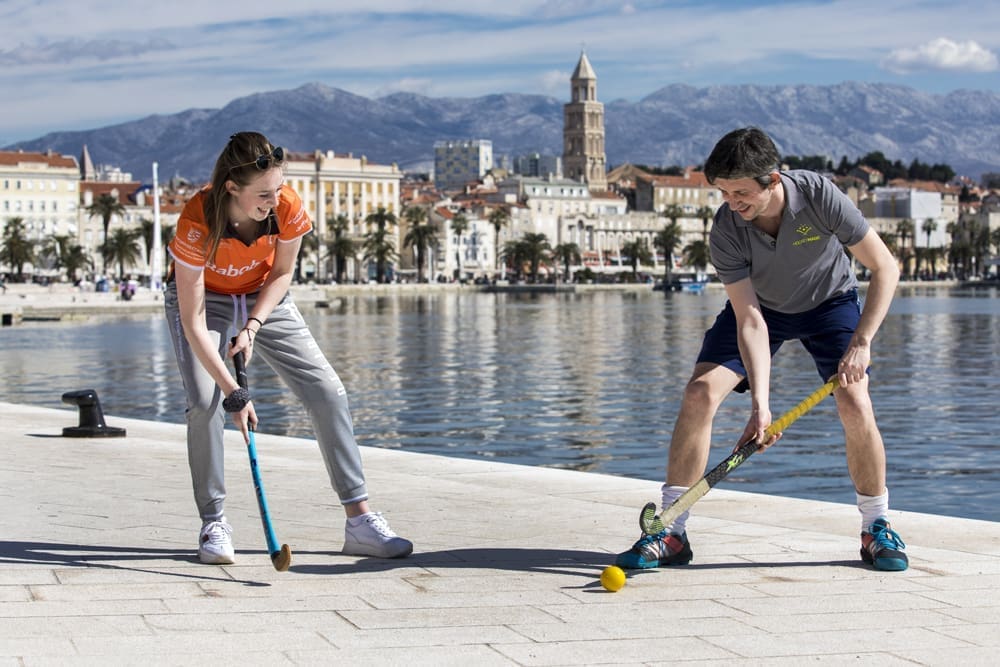 Pitanja o samom hokeju na travi i dojmovima iz Splita ostavili smo za Alberta i Anne koji su treneri i igrači Hokej kluba Oosterbeek. Anne uz svoj igrački i trenerski angažman u klubu ujedno i studira, a hokej joj je pružio mogućnost da uz punu stipendiju provede vrijeme u SAD-u te iskusi njihov sportski i edukacijski sustav. Kako nam je i sama rekla, hokej se kao i brojni drugi sportovi počinje trenirati dosta rano u životu.