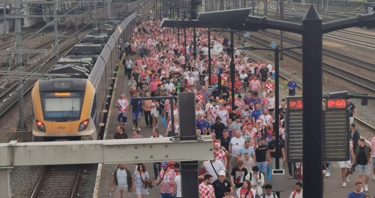 Među brojnim fotografijama i videozapisima koji prikazuju vatrenu atmosferu navijača već od jutra, najnovija vijest iz Rotterdama prikazuje navijače Hrvatske kako su crvenim 'kockicama' obojili i stanicu metroa.