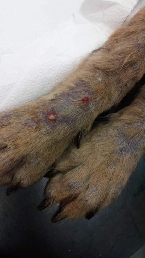 Ali zato demodex, jaku upalu kože, anemičan je. Čeka nas mjesec dana antibiotika. Gdje god ga taknemo doslovno koža puca i curi gnoj. Pun je rana što od demodexa to i od udaraca kamenjem, takvu smo informaciju dobili. Tako su ga tjerali od kuća, misleći da će prenijeti šugu na mještane. Zbog tog on je jako nepovjerljiv i plah. Inače veterinar kaže da je mlad, jedva godinu dana da ima. Nije uhranjen.
