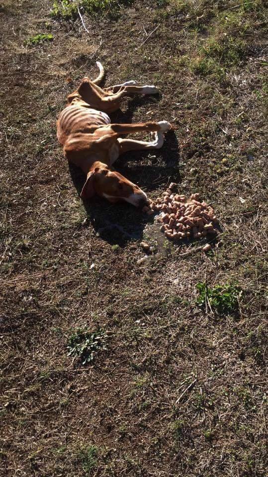 Na strašan prizor naišli su prolaznici prije nekoliko dana, šetajuć se svega desetak kilometara od Sinja. U polju su ugledali psa koji je bio na samrti, toliko izgladnio da su od njega ostali samo kost i koža.