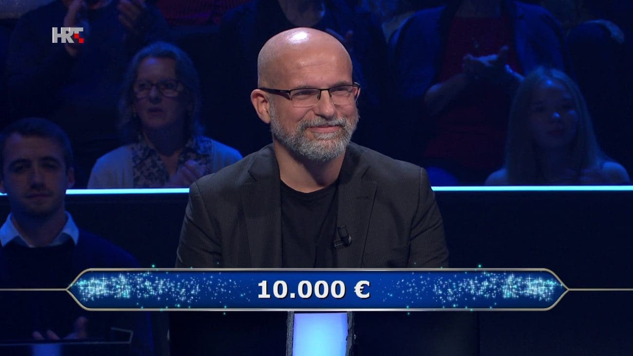 Samostalno i točno odgovorio je na prvih osam pitanja i osvojio 1.000 eura. Znao je stih pjesme Dine Merlina i Ivane Banfić, prepoznao Peggy Guggenheim kao kćer biznismena Benjamina Guggenheima te da je humerus nadlaktična kost.
