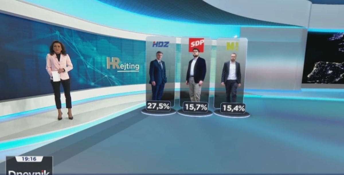 Za HDZ bi trenutačno glasalo 27,5% posto birača, a SDP i Možemo koji ga slijede gotovo su 12% slabiji. SDP (15,7%) i Možemo (15,4%) mjesecima se izmjenjuju na drugoj i trećoj poziciji. Ovaj mjesec zanemariva razlika od 0,3% ide u korist SDP-a.