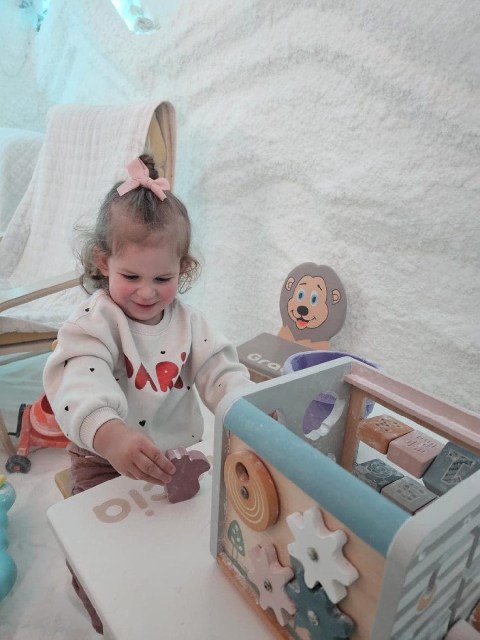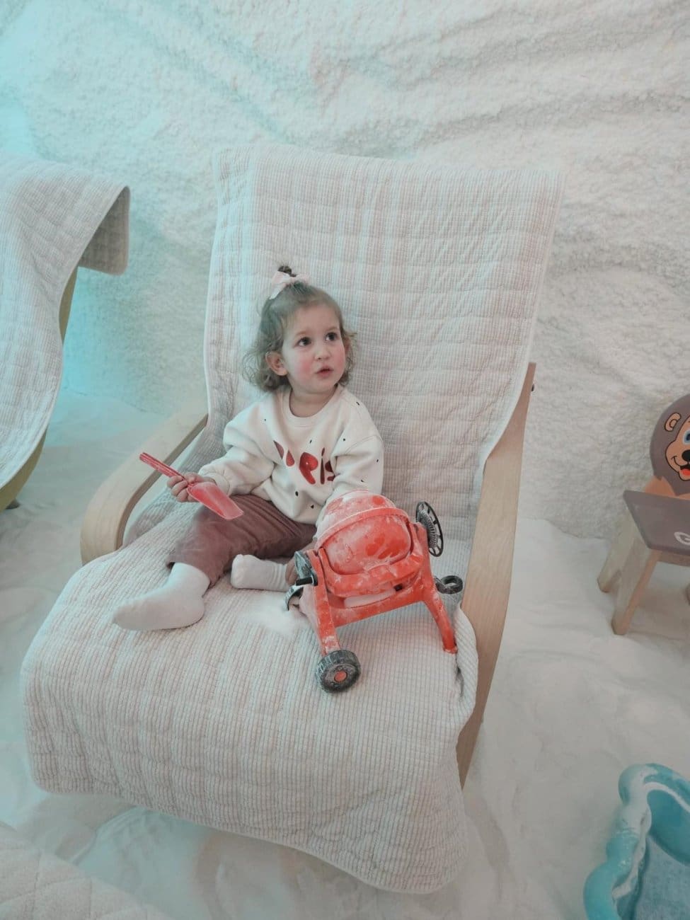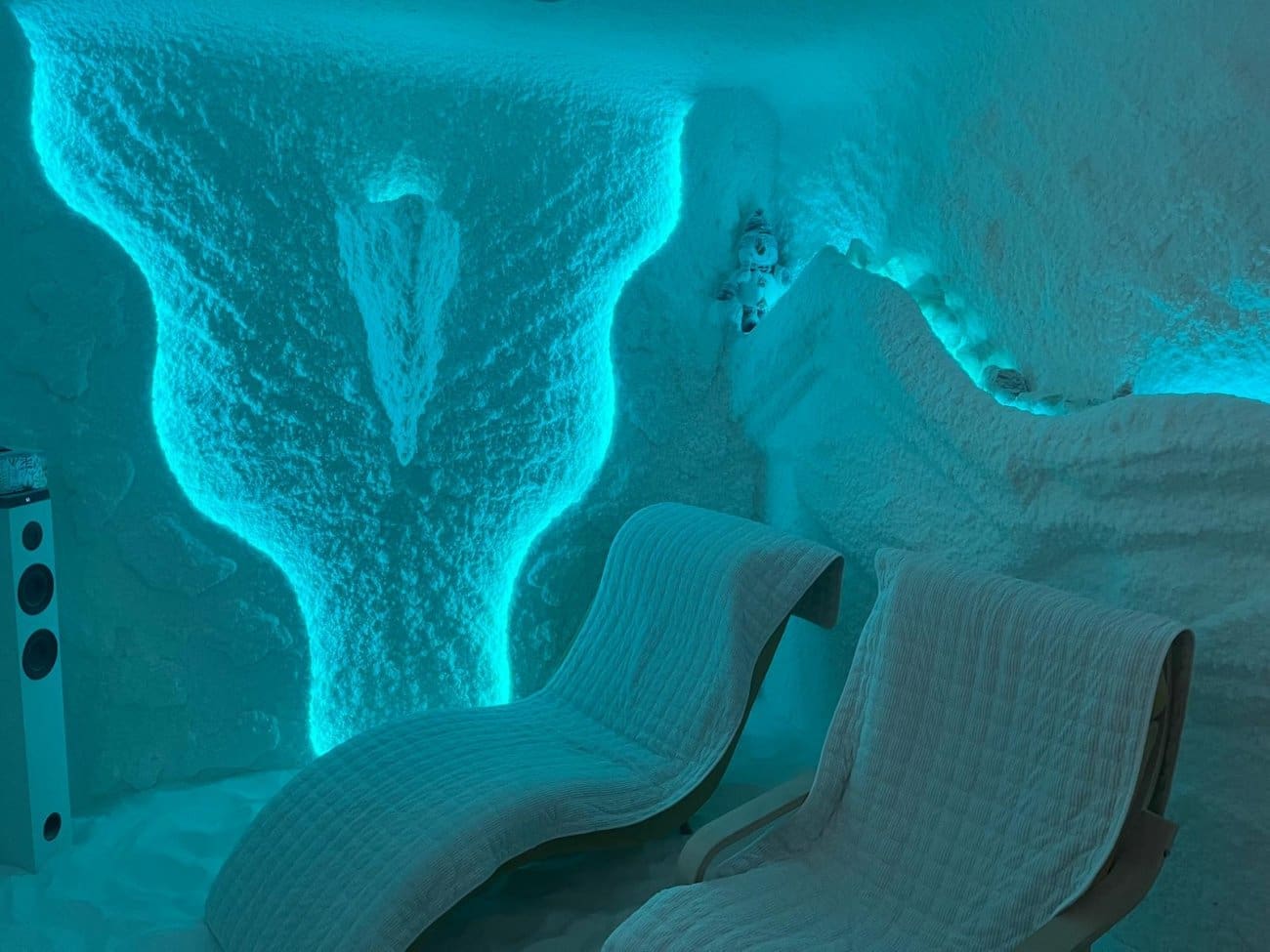 U slanoj sobi djeca se najčešće zabavljaju igrom pa tako umjesto pijeska, koriste sitne kristale soli kako bi gradila kule i kopala bagerima. Dok oni uživaju u kreativnoj igri, odrasli se mogu opustiti u udobnim foteljama, uz laganu glazbu iz zvučnika i smirujuće promjene svjetlosnih efekata na stropu.