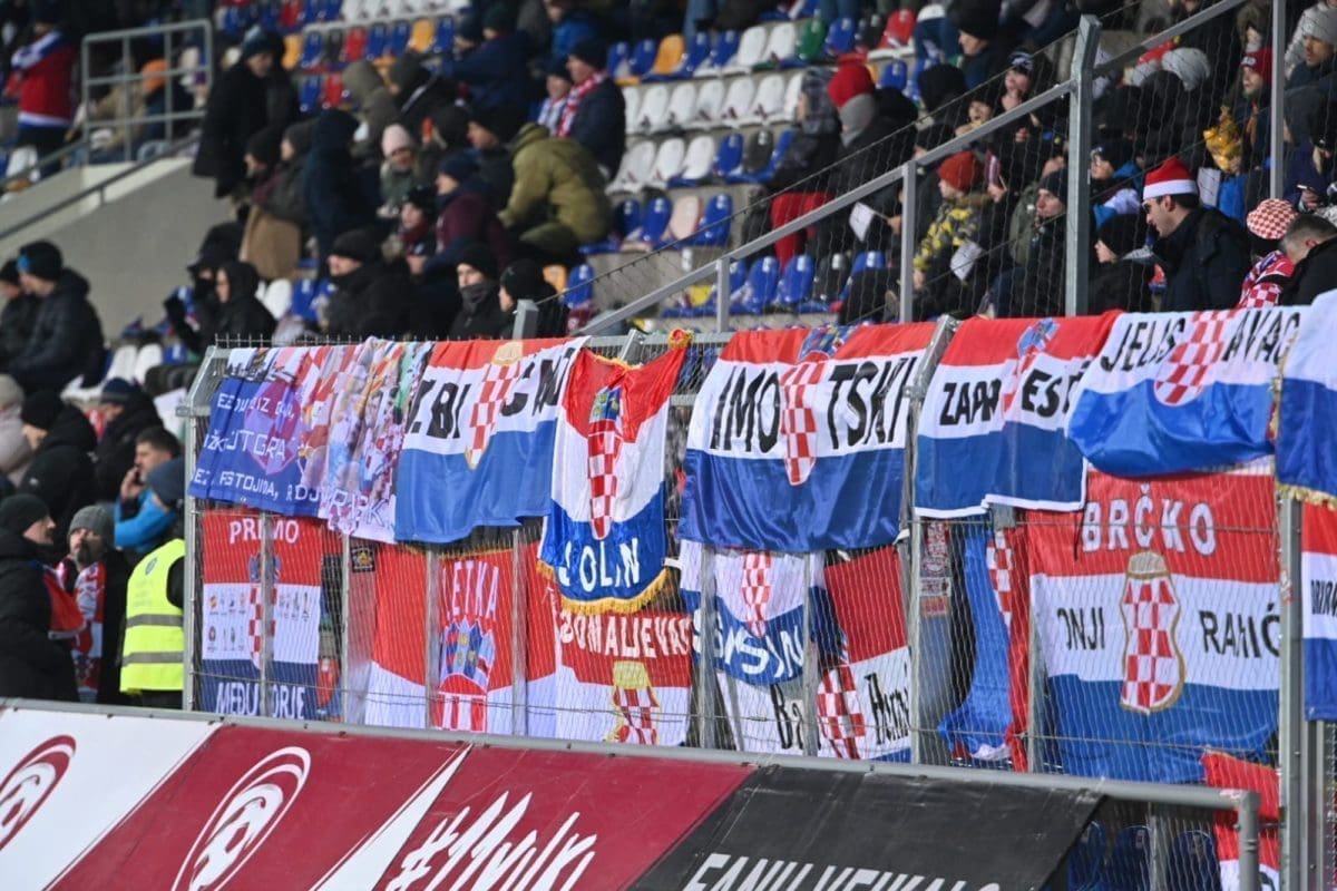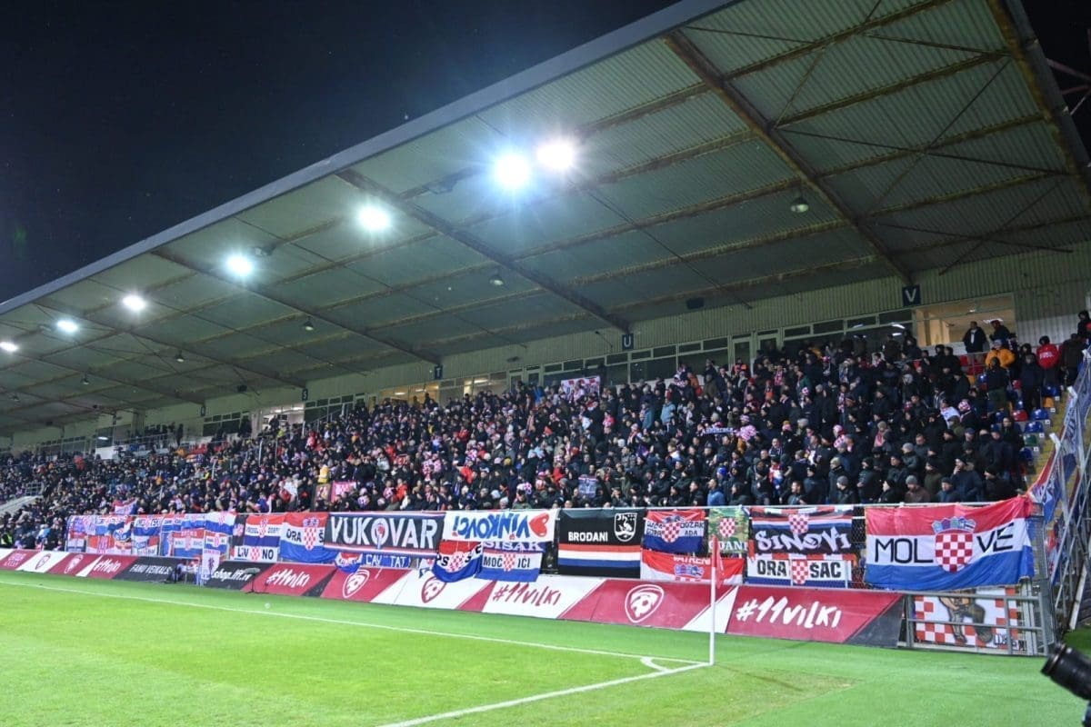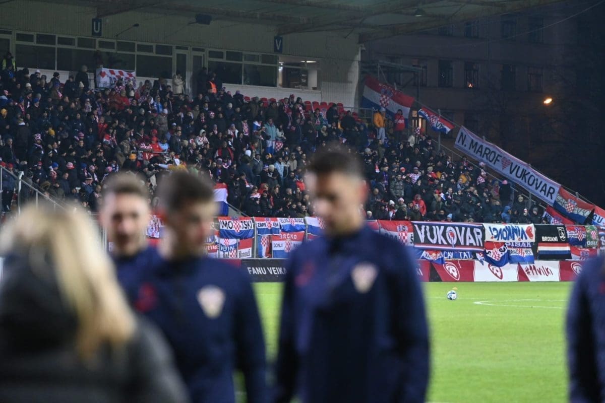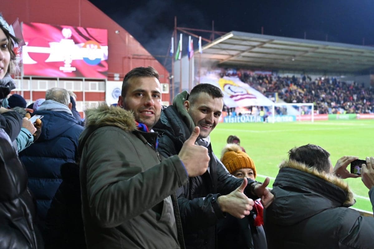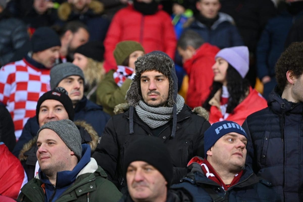 Djeca s tribina traže dresove nogometaša, izvješeni su brojni transparenti, posebno u oko upada onaj na kojem je slika vukovarskog vodotornja. Na tribinama se može uočiti i jedno poznato lice, pogledajte i sami u galeriji našeg Roka Pavlinušića o kojem je legendarnom televizijskom voditelju riječ.