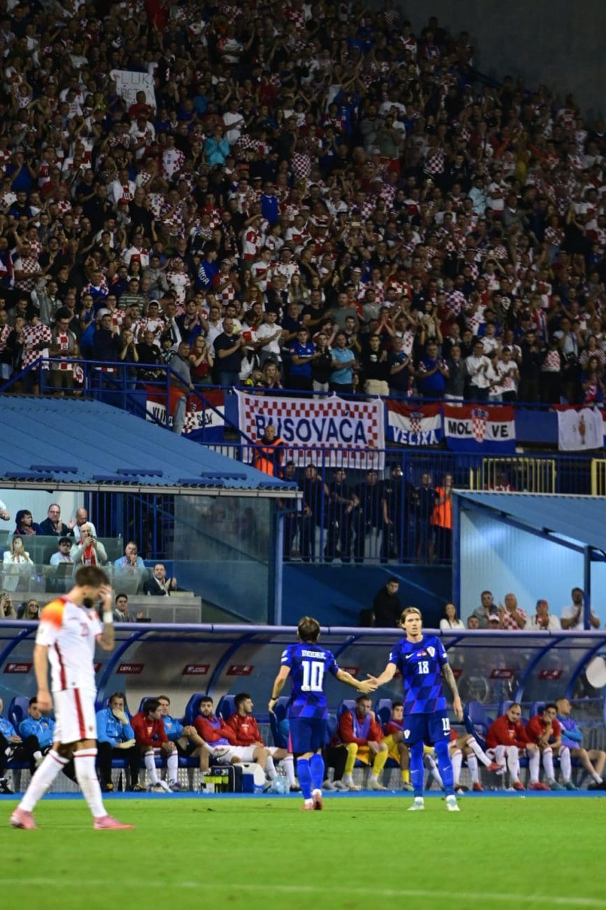 Hrvatska nogometna reprezentacija danas je od 20:45 igrala četvrtu utakmicu kvalifikacija za Svjetsko prvenstvo 2026 protiv Crne Gore na Maksimiru. Hrvatska je pobjedama otvorila kvalifikacije, prvo su slavili nad Gibraltarom 7:0, zatim s 5:1 protiv Češke, a rujanski je dio kvalifikacija započet pobjedom od 1:0 protiv Farskih otoka. Pozitivan su niz Vatreni zadržali i u ovoj utakmici nošeni golovima Jakića iz 35. minute, Kramarića iz 51., Majera iz 85. i Perišića iz 92.