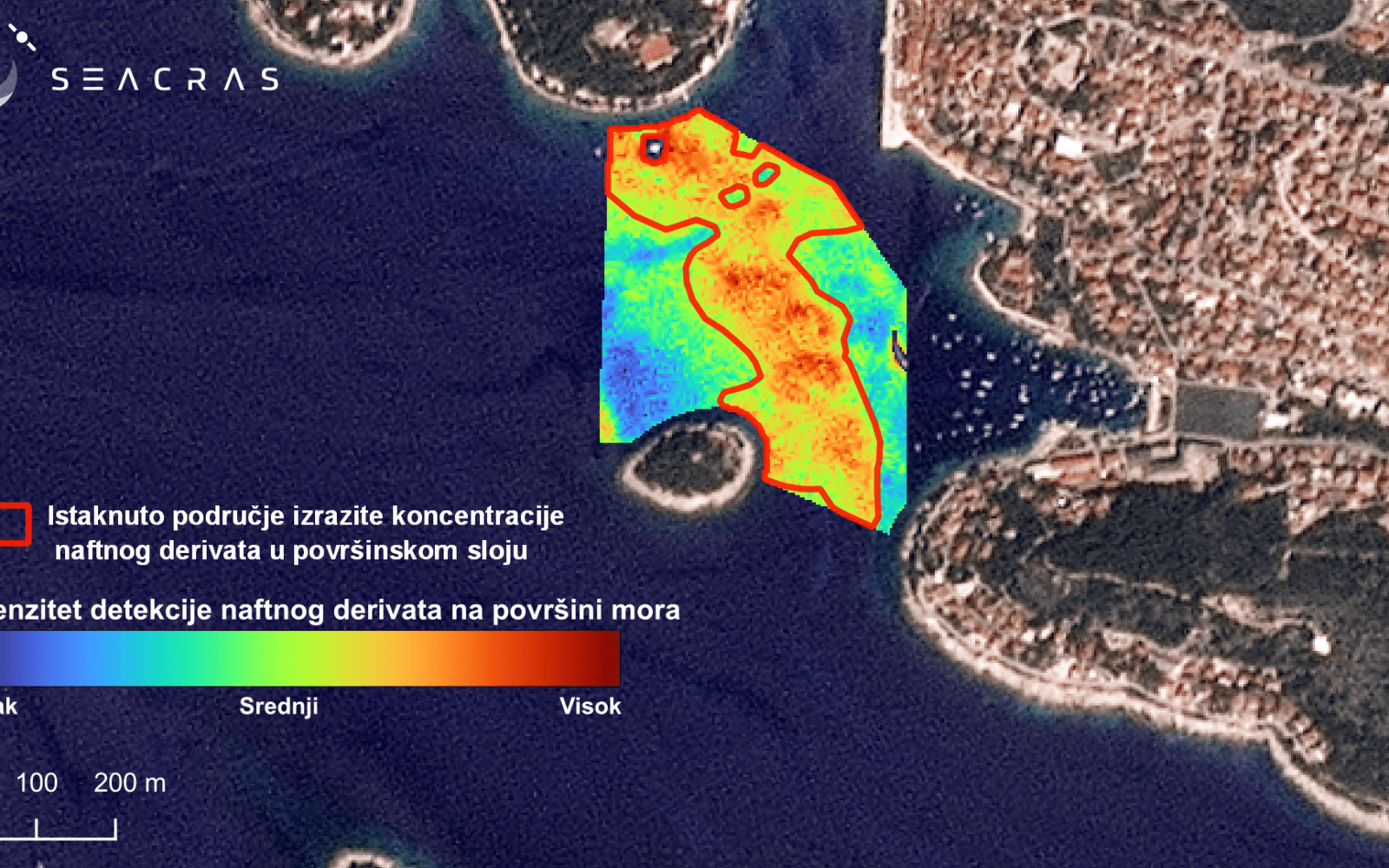 SeaCras je inovativna domaća tvrtka specijalizirana za primjenu umjetne inteligencije (AI) i satelitskih tehnologija u praćenju stanja mora i zaštiti morskog okoliša. Njihov sustav omogućuje detaljnu analizu morskih površina, detekciju onečišćenja te procjenu opsega i širenja incidenata poput izlijevanja nafte, ali i ostalih onečišćujućih tvari prema MARPOL konvenciji.