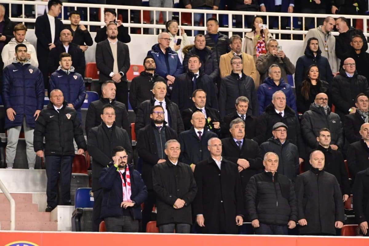 20:44 - Klapa HRM-a Sveti Juraj izvela je himnu Hrvatske, a navijači su potom ponovno krenuli sa skandiranjem "Vukovar! Vukovar!". Poljud je minutom šutnje odao počast preminulom vrataru Hajduka i reprezentacije, Tonču Gabriću.