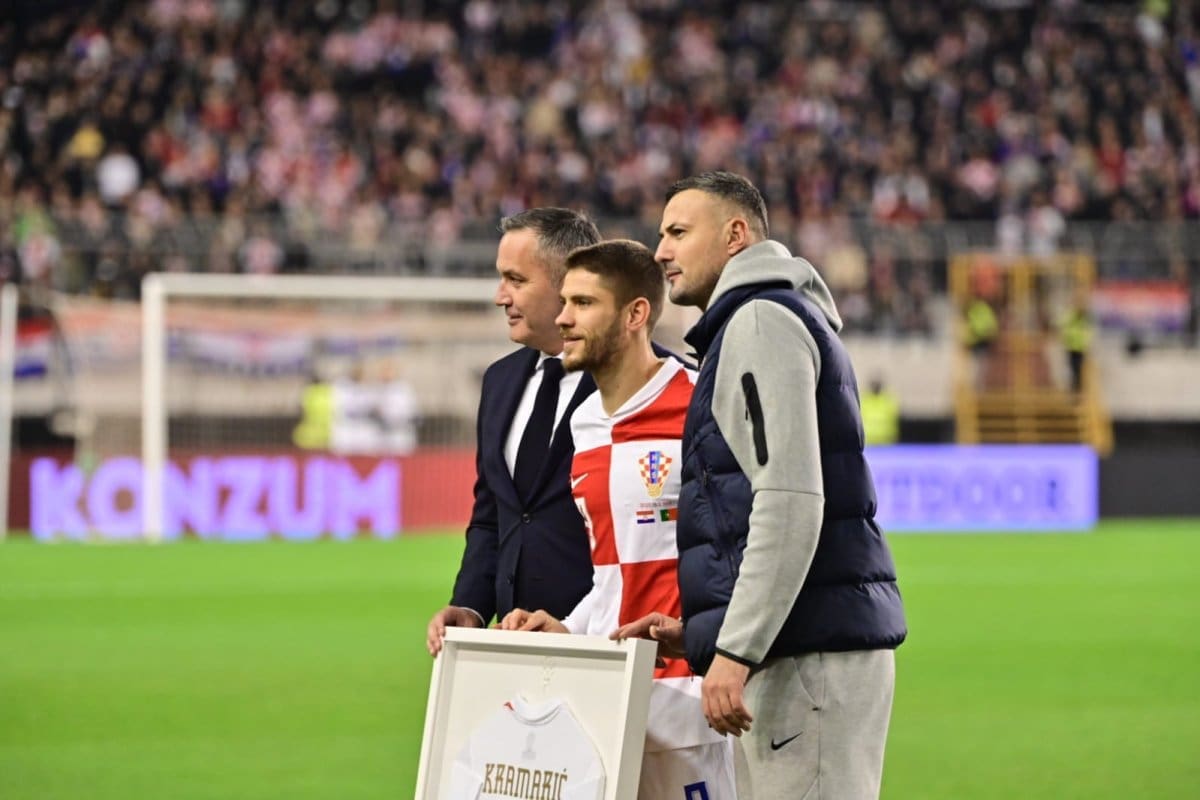 20:40 - Uoči samog početka utakmice, održana je ceremonija u kojoj je vratar Lovre Kalinić ispraćen ovacijama cijelog Poljuda za kraj reprezentativne karijere. Igračima koji su 100 puta nastupali u dresu Hrvatske pridružio se i Kramarić, koji je također popraćen ovacijama.
