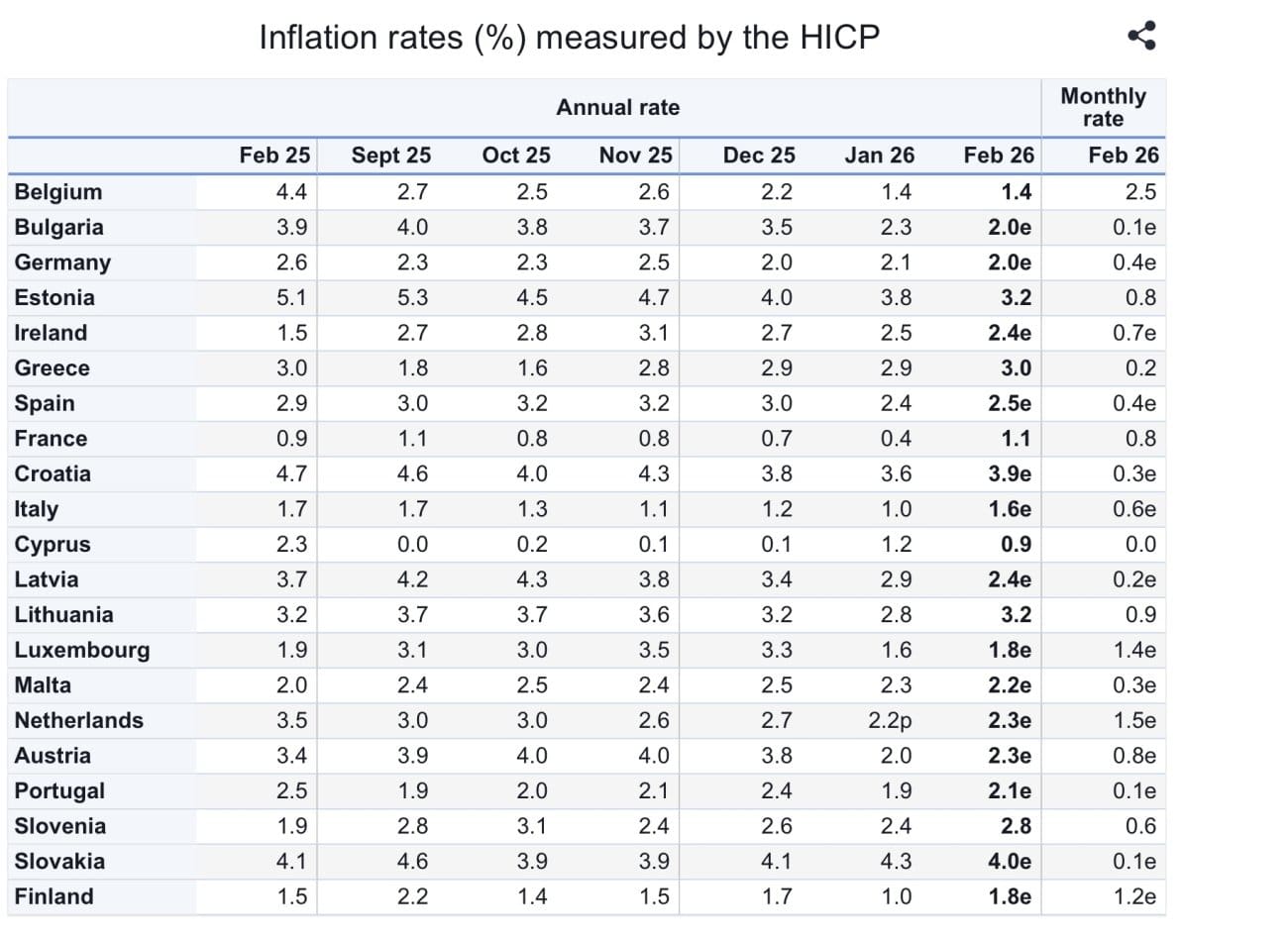 Usporedno gledano, Hrvatska se sa stopom od 3,9 posto (prema harmoniziranom indeksu) nalazi među zemljama s višom inflacijom u Europskoj uniji, uz države poput Slovačke i Estonije.
