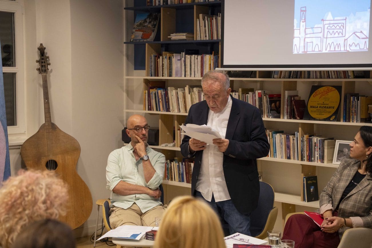 U središtu razgovora našla se antiratna književnost devedesetih, te djela Mirka Kovača, Danila Kiša i Nikole Lopičića, trojice autora čije su sudbine i knjige povezivale prostore i ljude. Podsjetilo se kako je Mirko Kovač, nakon napada u Beogradu, preselio u Rovinj, gdje je i umro, ostavivši iza sebe opus koji nadilazi granice. Nikola Lopičić je, pak, između dva svjetska rata bio profesor u Splitu te napisao knjigu Ne diraj palmu, intimno vezanu uz život Splita toga doba.