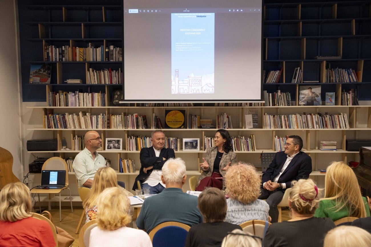 U punoj dvorani splitske knjižnice Dalmatina, u utorak navečer razgovaralo se o onome što književnost čini najvećom – o otporu nasilju, granicama i mržnji. Glavni urednik podgoričke izdavačke kuće Fokalizator prof. dr. Vladimir Vojinović, književnik Božo Koprivica, književna kritičarka dr. sc. Sanja Vojinović i nagrađivani novinar Damir Šarac poveli su publiku u dijalog o suradnji hrvatskih i crnogorskih književnika.