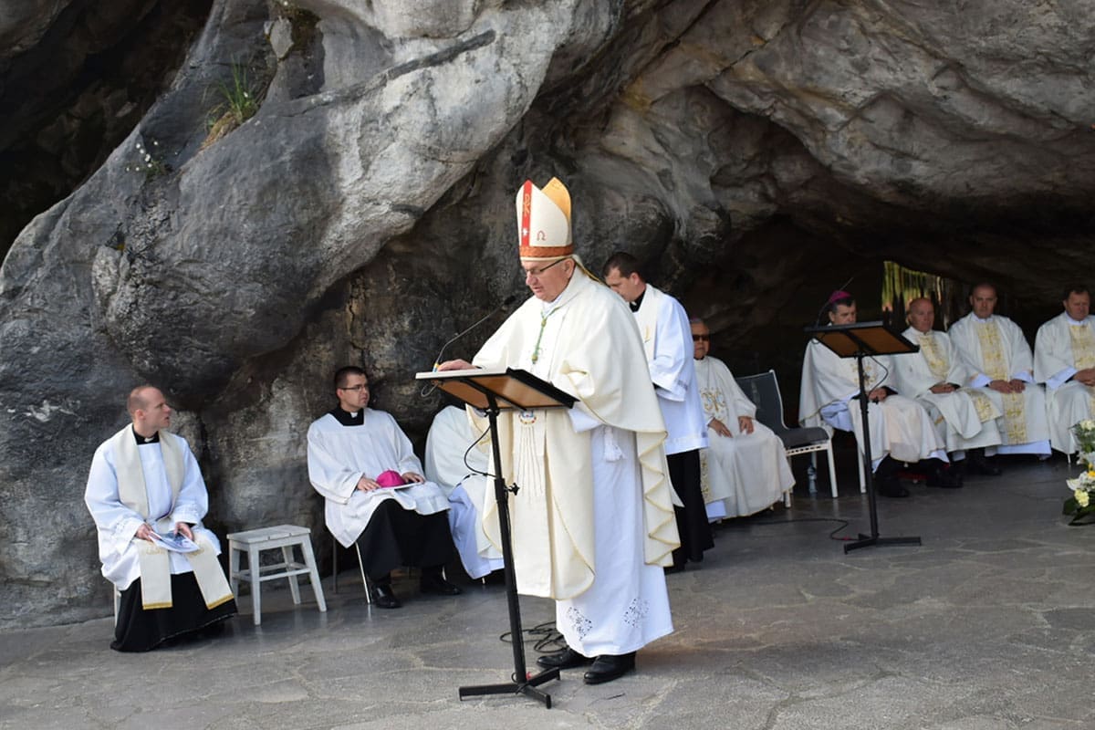 U propovijedi pred Špiljom ukazanja pred hodočasnicima iz Hrvatske i Bosne i Hercegovine, vojni ordinarij još jednom je istaknuo što za vjernike, što za Hrvate znači Lourdes, kao jedno od Boga privilegiranih mjesta susreta između neba i zemlje i tri važna elementa vezana za ovo mjesto: stijenu, vatru i vodu.