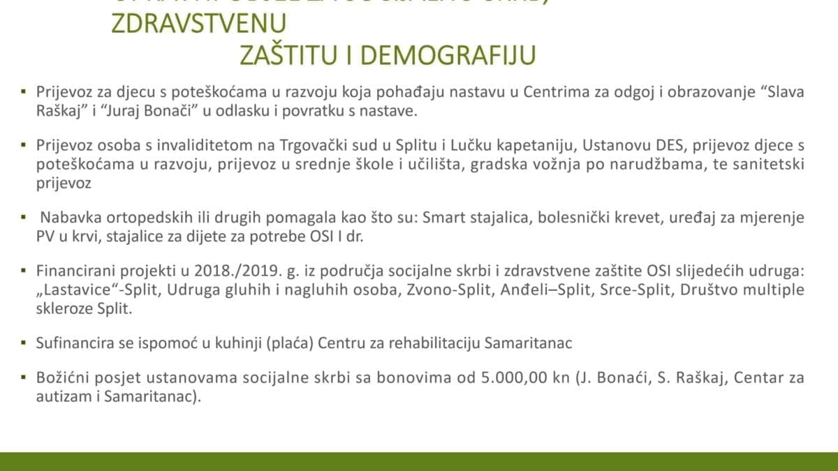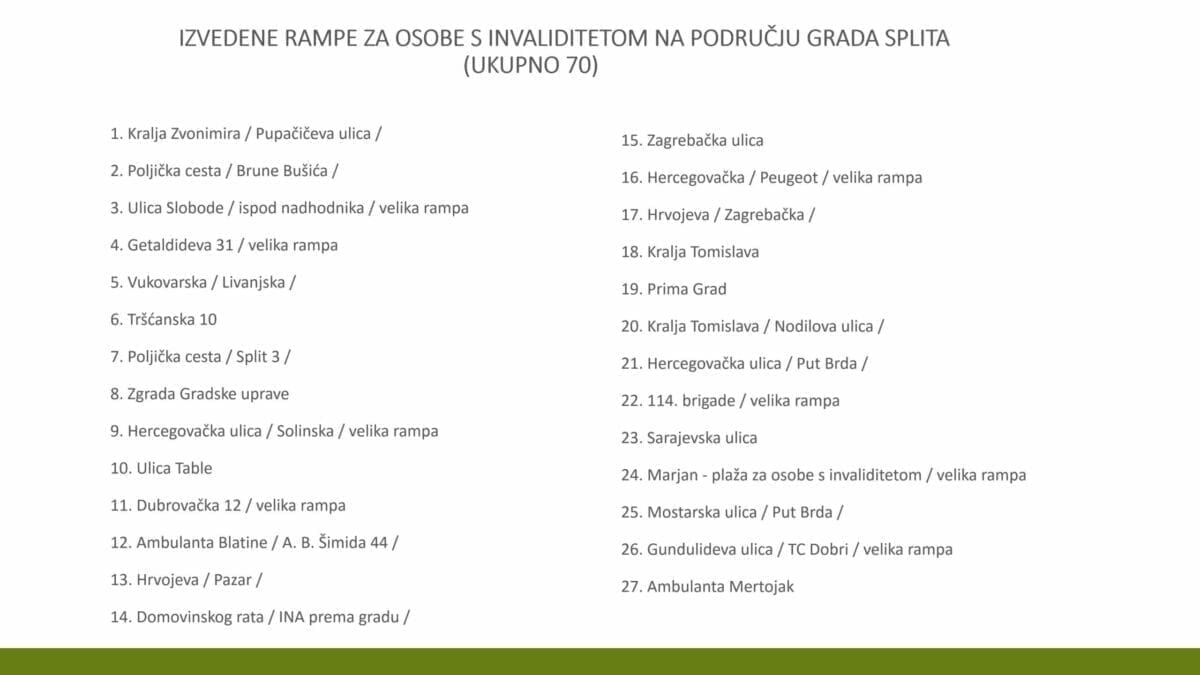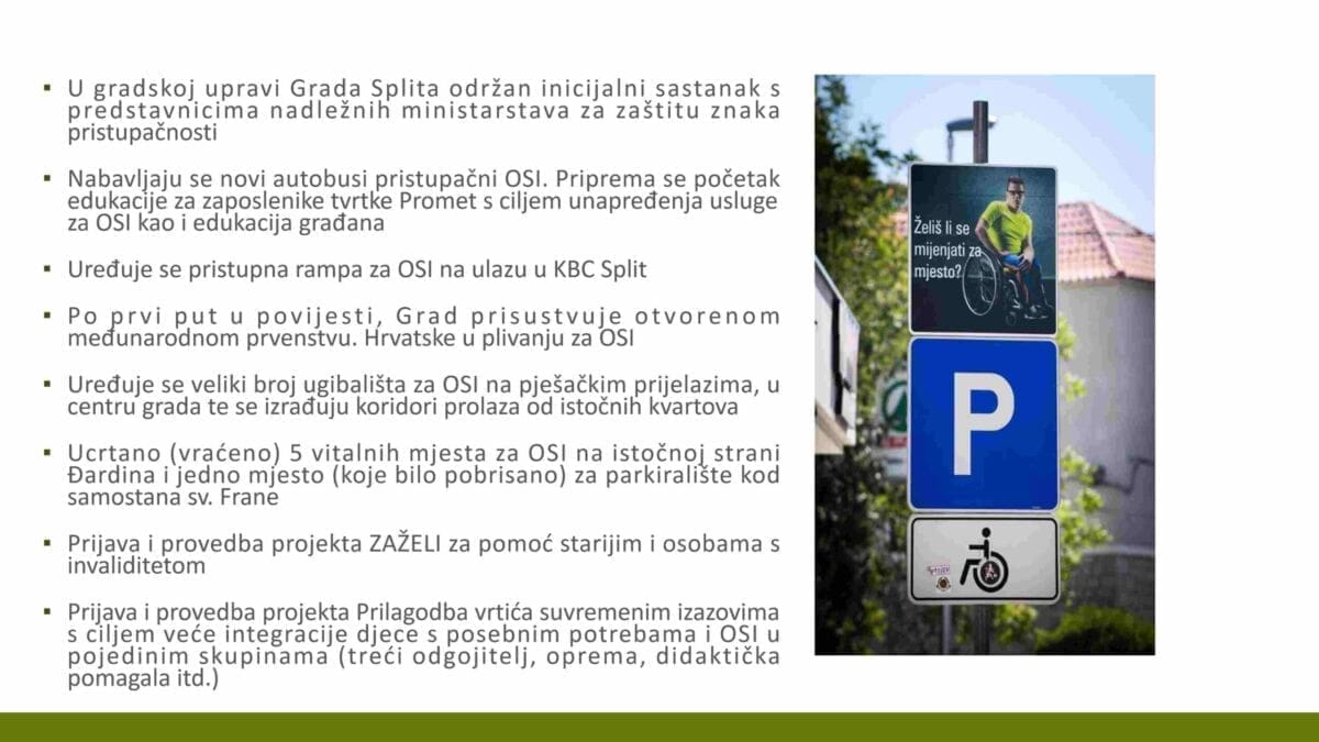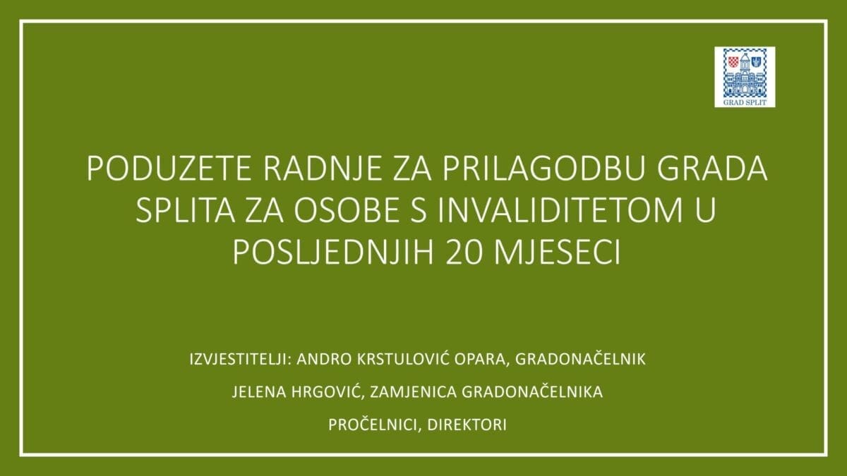 - Ova gradska uprava na čelu s gradonačelnikom Androm Krstulovićem Oparom prepoznala je potrebe velikog broja naših sugrađana da Split postane pristupačni grad i to smo si zadali u jedan od najvažnijih ciljeva, o čemu svjedoči i veliki profesionalni i osobni angažman naših kolega i suradnika da se ove promjene i dogode. Zahvaljujući stalnim kontaktima i razgovorima s ljudima u potrebi, pojedincima i udrugama, osobama s invaliditetom, u mnogim slučajevima vodili smo se pogledom iz njihove perspektive, koji je još uvijek opterećen brojnim preprekama. Zadovoljni smo zbog niza promjena koje su učinjene ili su u pripremi, ali smo svjesni da je još puno posla pred nama.