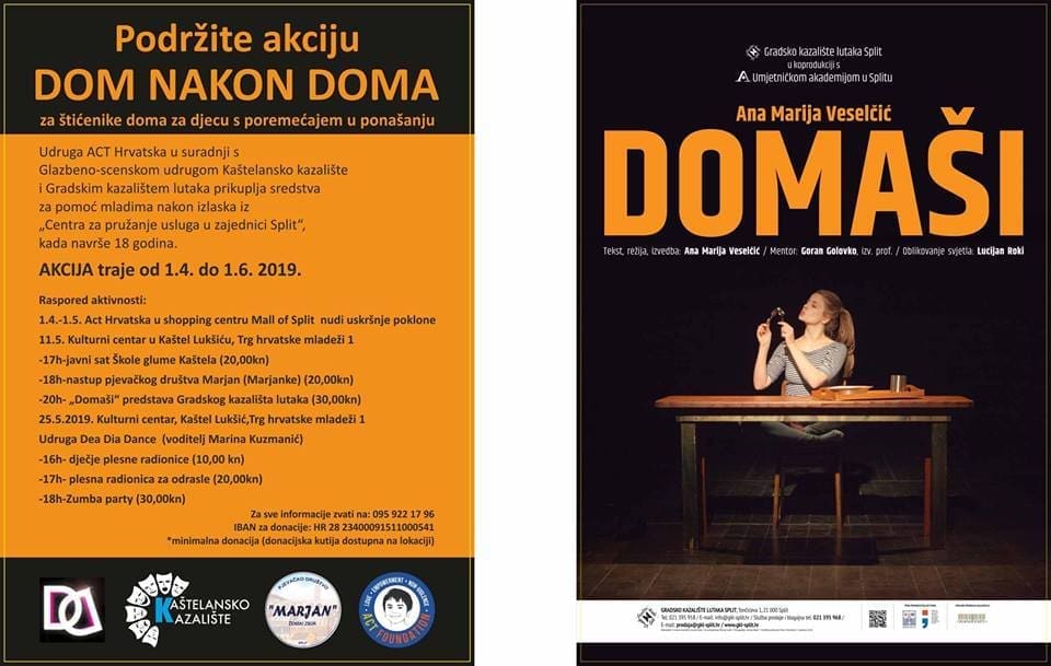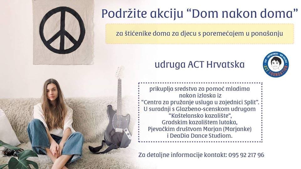 "Dom nakon doma" je humanitarna akcija udruge ACT Hrvatska koja u suradnji s Glazbeno-scenskom udrugom Kaštelansko kazalište, Gradskim kazalištem lutaka, Pjevačkim društvom Marjan i udrugom Dea Dia Dance prikuplja sredstva za pomoć djeci nakon izlaska iz Centra za pružanje usluga u zajednici Split, koji je usmjeren na djecu i mlade s poremećajima u ponašanju i osobnosti.