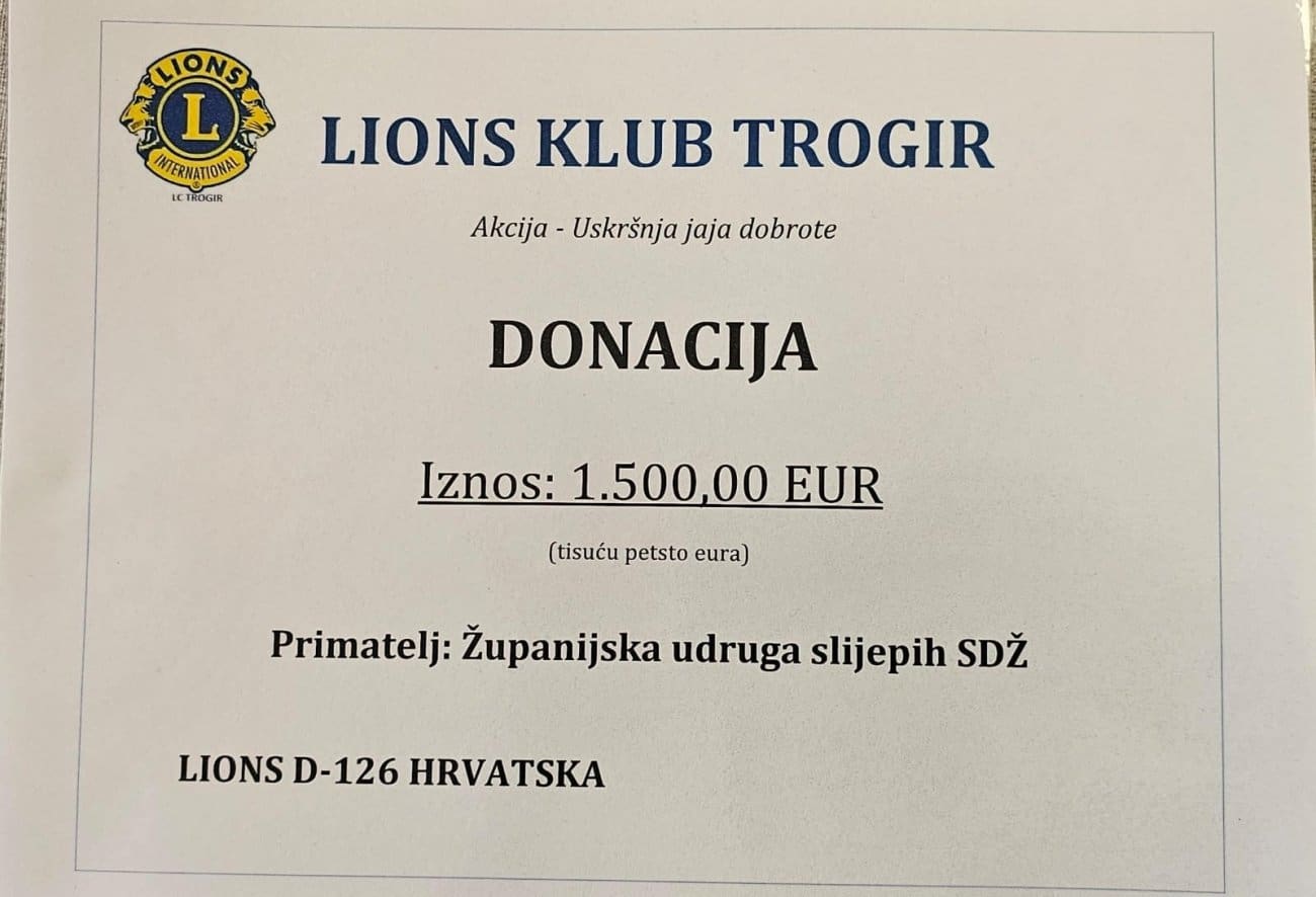 Lions klub Trogir uključio se u obilježavanje 75. obljetnice Županijske udruge slijepih i slabovidnih osoba Splitsko-dalmatinske županije, a tom je prilikom realizirana i vrijedna humanitarna akcija.