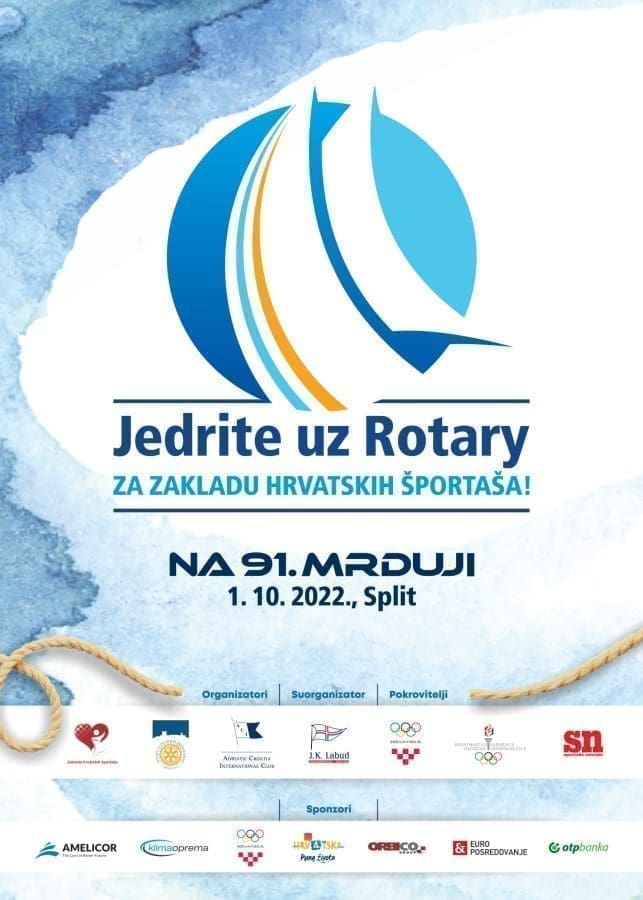 U suradnji s ACI-jem, JK Labud, Hrvatskim olimpijskim odborom, Hrvatskim klubom olimpijaca i Sportskim novostima, Rotary klub Zagreb Medvedgrad i Zaklada hrvatskih sportaša priređuju 1. listopada humanitarno jedriličarsko natjecanje u sklopu 91. izdanja Mrdujske regate.