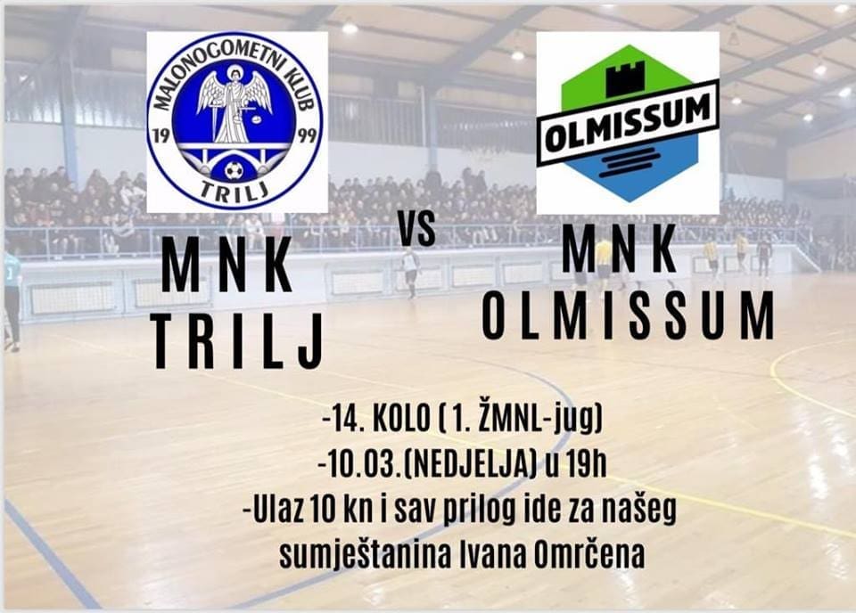 Gost MNK Trilju će biti omiški Olmissum, a utakmica će biti odigrana u sklopu 14. kola 1. ŽMNL – jug.