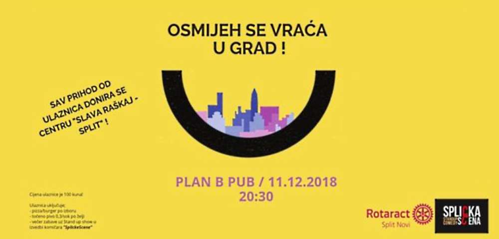 Rotaract klub Split Novi poziva na tradicionalnu humanitarnu stand-up večer "Osmijeh se vraća u grad", a koja će se ovaj put ostvariti u suradnji s ekipom iz Splicke Scene.