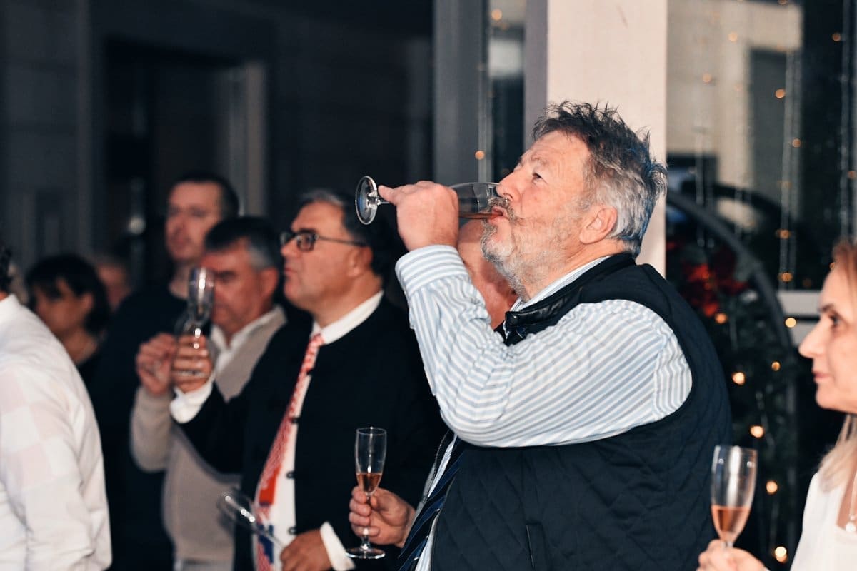 Uzvanici su sa zanimanjem kušali probrane pjenušce i nazdravljali pobjedi naše reprezentacije. Našao se tu prvi dalmatinski pjenušac uopće, vinarije Grabovac, pa zatim prvi kaštelanski, prvi korčulanski, pričalo se o tradicionalnoj, charmat i pet nat metodi izrade pjenušaca, a zatim se pristupilo i aukciji.