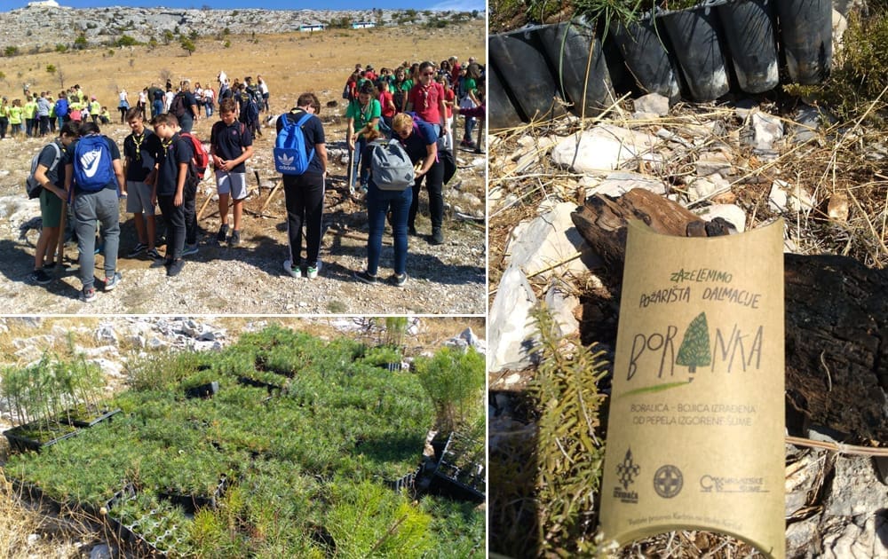 Pod budnim okom djelatnika Hrvatskih šuma i HGSS-a, stotine volontera, među kojima su prednjačili mladi i djeca, započeli su sadnju mladica crnog bora, čempresa i primorskog bora.