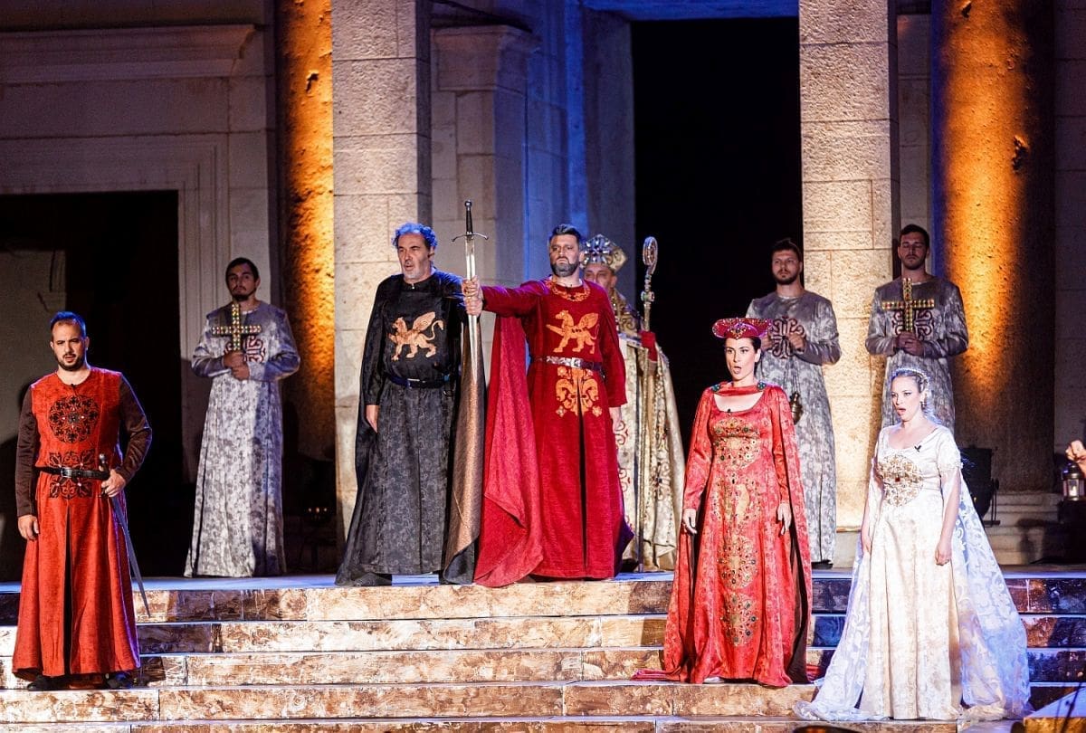 Opera Hrvatskog narodnog kazališta Split će, u četvrtak i subotu 22. i 24. srpnja s početkom u 21 sat, na Peristilu izvesti Verdijevu operu Lombardijci. Predstava koja je, popraćena odličnim kritikama, premijerno izvedena na prošlogodišnjem Splitskom ljetu, vraća se na festivalski program. Izvedbama će po prvi put ravnati maestro Jure Bučević, redatelj je Robert Bošković, a uz Zbor i Orkestar HNK Split kao solisti nastupit će: Ivica Čikeš, Daniela Schillaci, Max Jota, Antonija Teskera, Bože Jurić Pešić, Mate Akrap, Joško Tranfić, Branka Pleština Stanić i Vinko Maroević te članovi ansambla Baleta HNK Split.