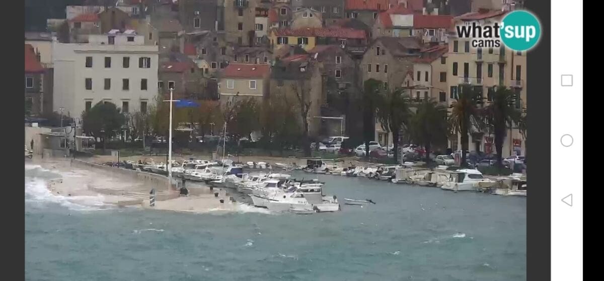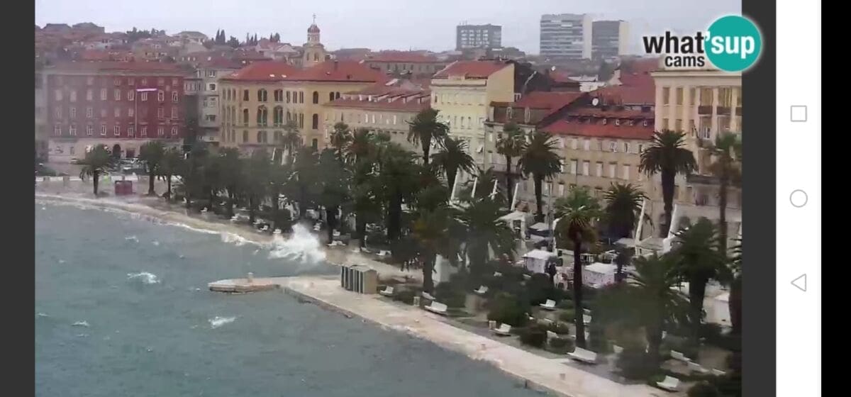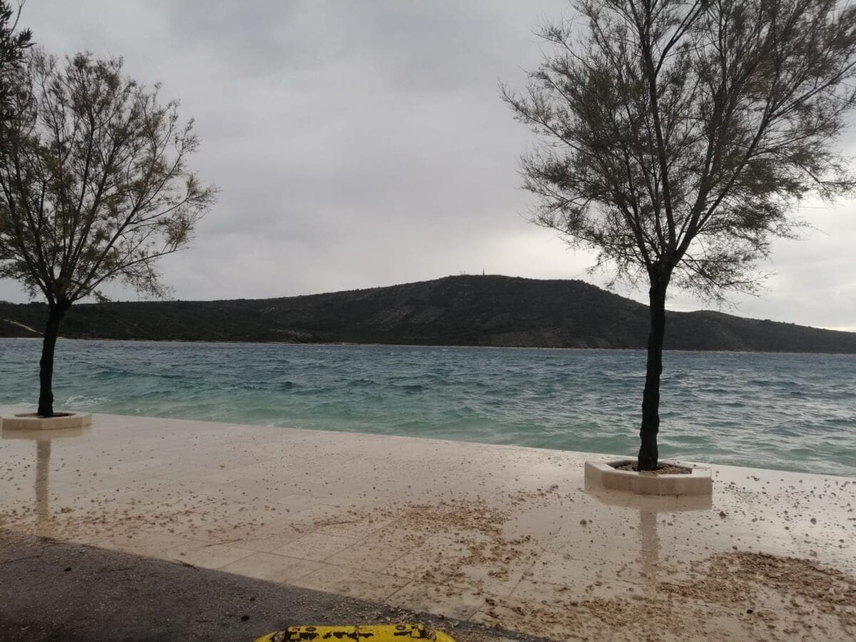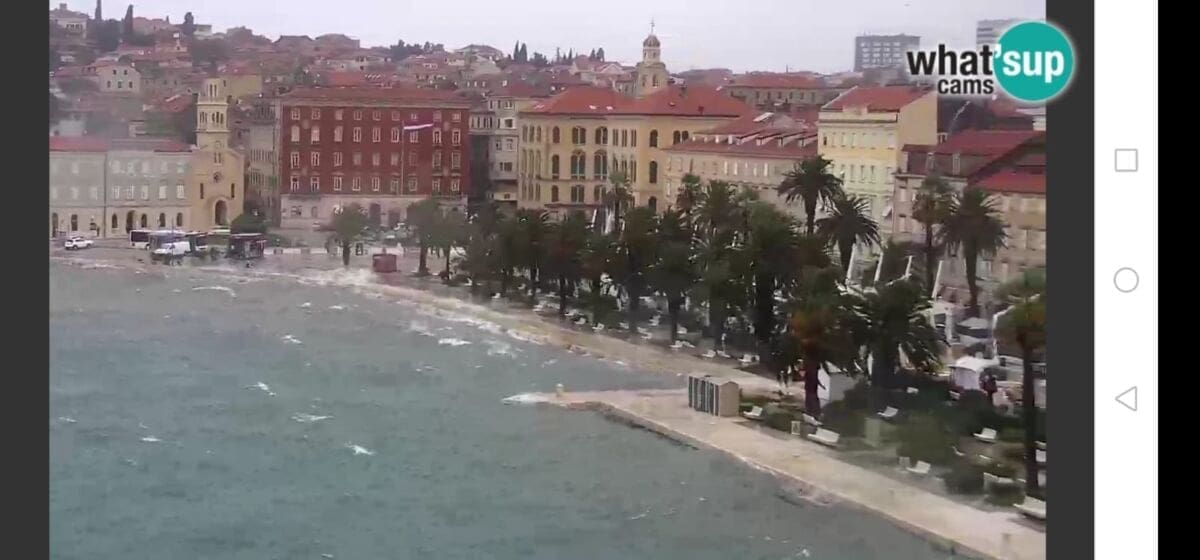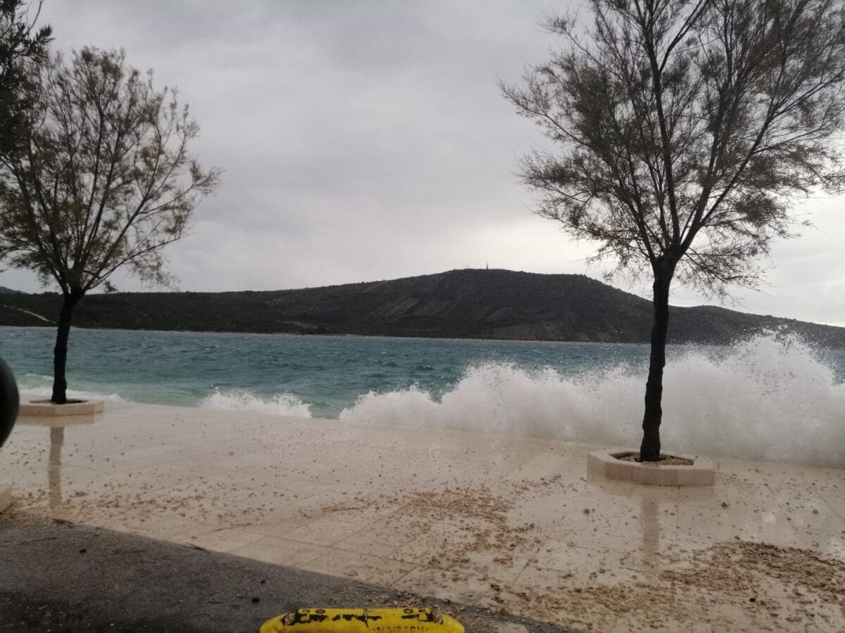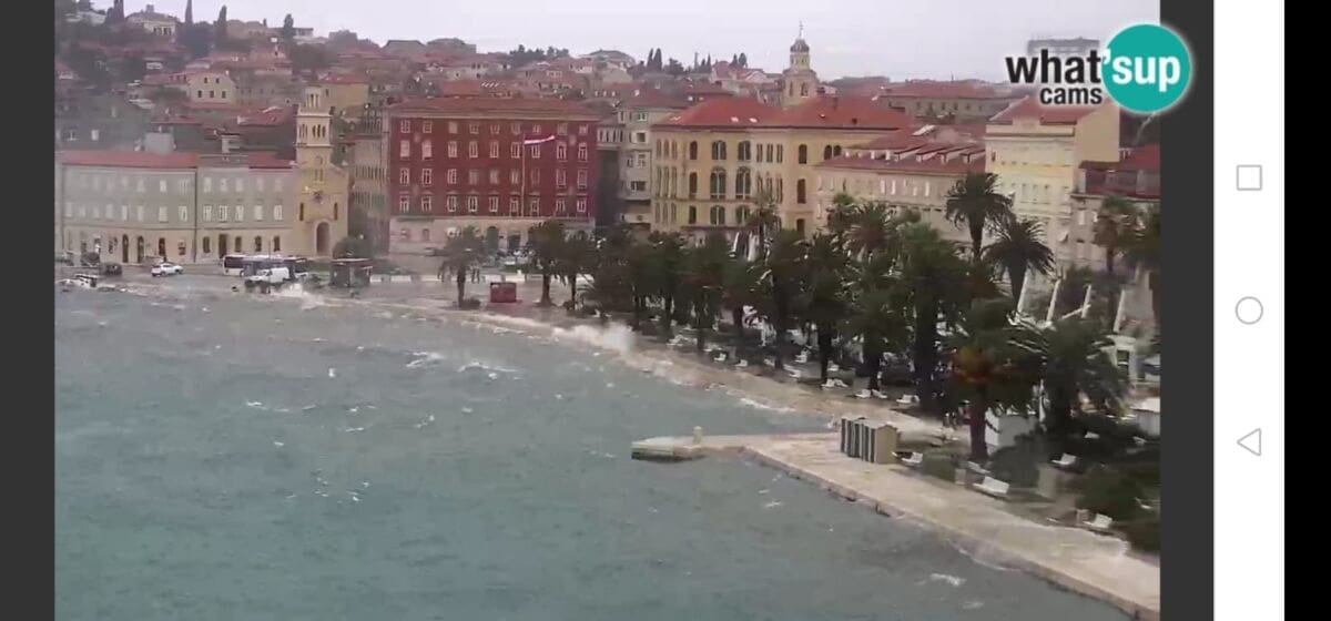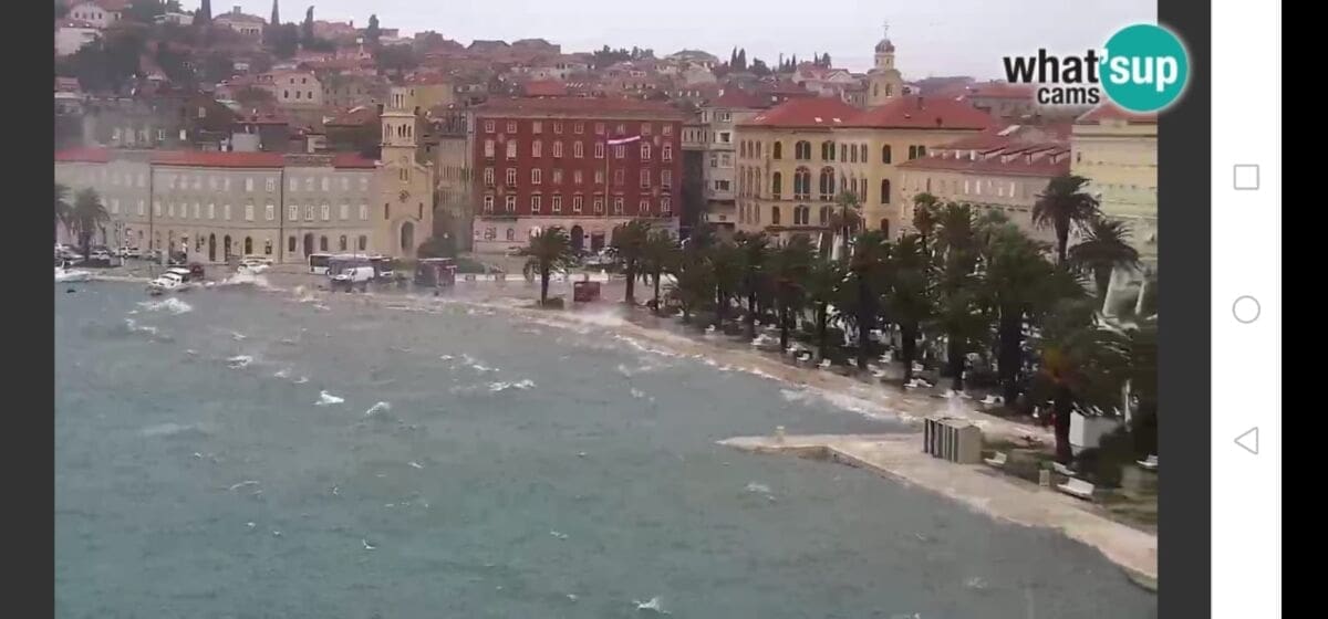 Glavno metereološko obilježje dana je vjetar. Jutros je puhalo jako jugo s olujnim udarima, koje na splitskom području puše do 90 km/h. Jugo je na okretanju na oštro, a uskoro se očekuje i daljnje okretanje vjetra na lebić, koji bi mogao imati udare preko 100 km/h, što će dodatno povećati valovitost mora. Već sada postoje brojni problemi u pomorskom prometu pa su u prekidu sljedeće linije:
